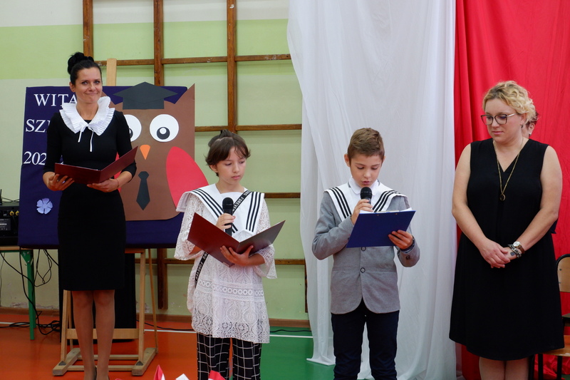 Podczas uroczystego apelu, pierwszoklasiści w obecności zgromadzonych złożyli ślubowanie na sztandar szkoły. Przyrzekali być pilnymi uczniami, przyjaciółmi przyrody, a swoim zachowaniem napawać dumą rodziców i wychowawców.