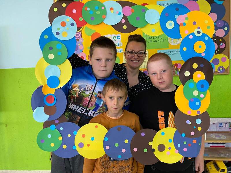 W świetlicy szkolnej powstała kropkowa fotobudka oraz tablica konkursowa „ile kropek ukryło się na plakacie”.