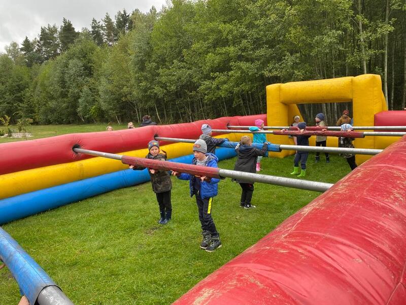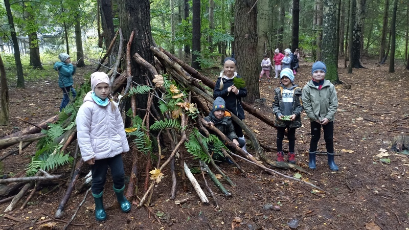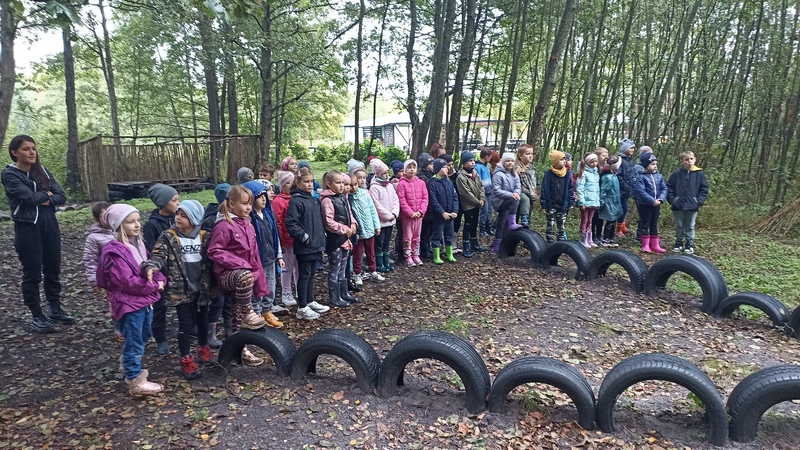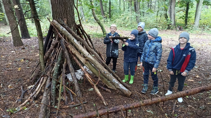 28 września klasy 1a i 1b wybrały się na wycieczkę do Spławia. Pierwszoklasiści pod okiem instruktorów korzystali ze stanowisk aktywności z elementami survivalu, m.in. budowali łuki i szałasy oraz uczyli się podstaw tropienia zwierzyny. Dzieci rozegrały turniej piłki nożnej przy użyciu dmuchanego sferycznego boiska. Gry i zabawy w plenerze sprawiły uczniom wiele radości. Z ogromnym zaangażowaniem wykonywali wszystkie zadania. Po wysiłku fizycznym był czas na samodzielne upieczenie kiełbaski i ciepłą herbatę. Zorganizowane atrakcje odbywały się na terenie leśnym, przez co uczniowie mieli okazję kształtować swoją świadomość ekologiczną i działać w zgodzie z naturą.