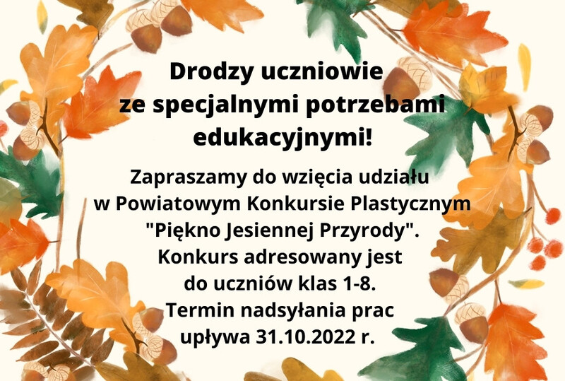 Zapraszamy do wzięcia udziału w Powiatowym Konkursie Plastycznym "Piękno Jesiennej Przyrody".