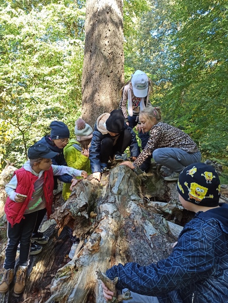 7 października 2022 roku klasa 3e wybrała się na wycieczkę do Nadleśnictwa Karnieszewice, aby poznać różne gatunki drzew, krzewów i innych roślin w tamtejszym arboretum. W sprzyjającej, pięknej pogodzie polskiej złotej jesieni dzieci spacerowały po lesie z panią leśnik, która opowiadała o mieszkańcach 140 - letniego boru. Wyprawa zakończyła się ogniskiem z pieczonymi kiełbaskami i jabłkami. Zachwyceni, pełni wrażeń trzecioklasiści zaczęli w ten sposób cykl lekcji o lesie.