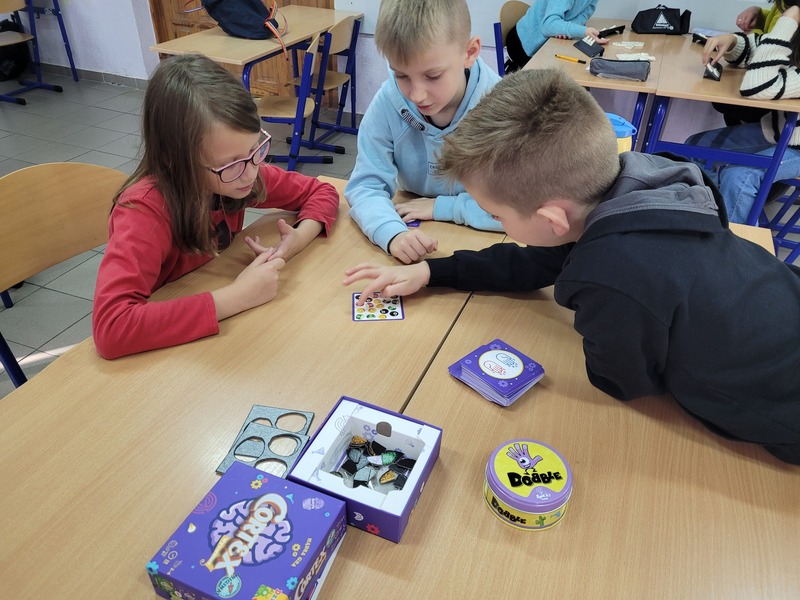 Szkolny Klub Miłośników Gier rozbudza zainteresowania planszowymi grami coraz większe grono naszych uczniów. W naszych zasobach uczniowie mogą znaleźć m.in.: Rummikub, Triominos, Cortex, Scrabble, karty Dobble, Lisek Urwisek, 5 sekund, Spór o bór.