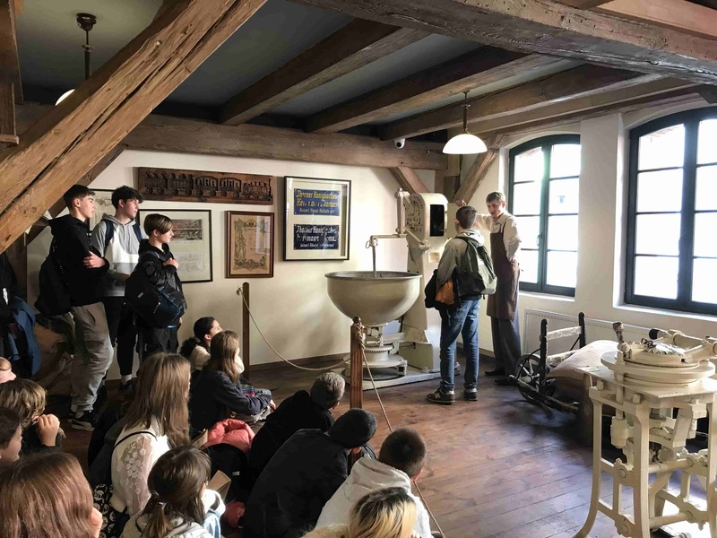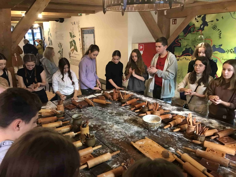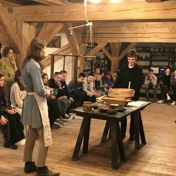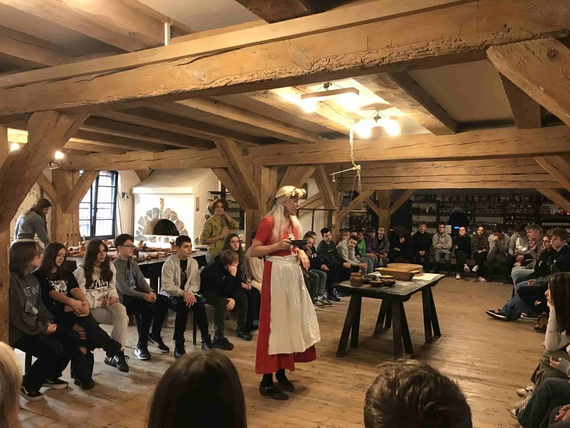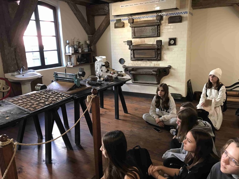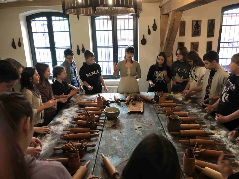 Wycieczka rozpoczęła się od warsztatów w Żywym Muzeum Piernika, gdzie mogliśmy pod czujnym okiem średniowiecznych czeladników wyrobić ciasto i upiec własne pierniki. Poznaliśmy też recepturę ciasta, z cynamonem, pieprzem, gałką muszkatołową oraz miodem.