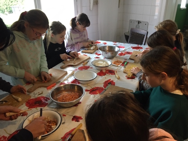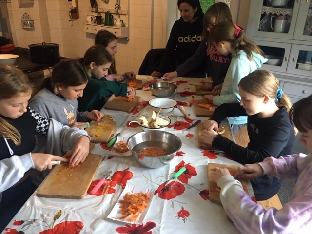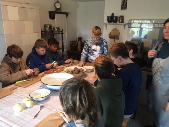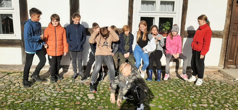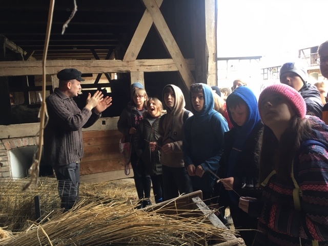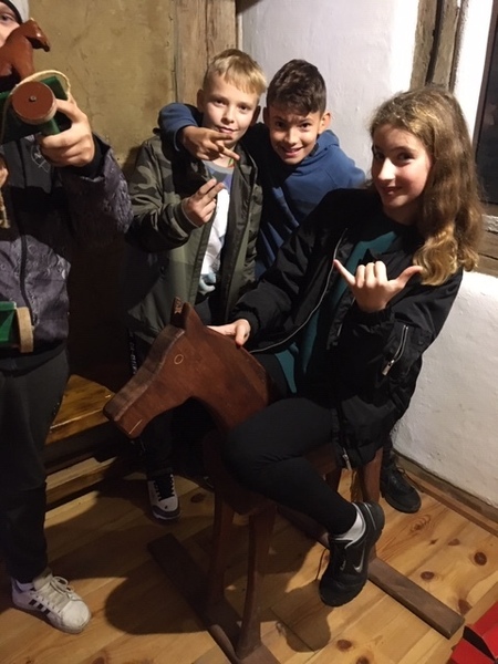 Gościnne Swołowo otworzyło swoje podwoje dla uczniów klasy 5c. Uczniowie uczestniczyli w zwiedzaniu Muzeum Kultury Ludowej. Z ciekawością oglądali sprzęty używane przez gospodarzy sto lat temu. Uczestniczyli w młóceniu zboża, siekaniu słomy. Z zainteresowaniem słuchali opowieści dotyczących obrzędowości i życia codziennego na dawnej wsi. Wiele emocji wzbudziło spotkanie ze zwierzętami gospodarczymi: końmi, owcami, kozami, gęsiami, kurami czy kaczkami. Z wielkim zaangażowaniem zostały przyjęte warsztaty kulinarne, gdzie uczniowie sami przygotowywali warzywa na zupę kartoflankę na starej kuchni kaflowej. Racuchy podane na koniec smakowały najbardziej. Spędzony czas w Swołowie zapamiętany zostanie cudownie. Ta wizyta wzbudziła w uczniach same pozytywne emocje, dostarczyła wiedzy na temat życia mieszkańców w przeszłości. Uczniowie wyjeżdżali bardzo zadowoleni zapowiadając swój szybki powrót na następne warsztaty.