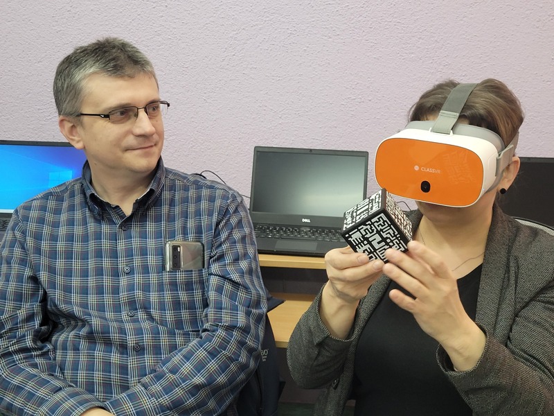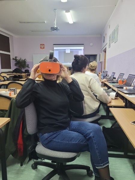 W listopadzie nauczyciele naszej szkoły poznawali możliwości okularów do wirtualnej rzeczywistości ClassVR, zakupionych w ramach Programu #LaboratoriaPrzyszłości. Ten nowoczesny sprzęt do realizacji podstawy programowej, dokona rewolucji w sposobie prowadzenia lekcji z wielu przedmiotów. Testowanie okazało się świetną zabawą, a jednocześnie daje inne, kreatywne i atrakcyjne nauczanie.