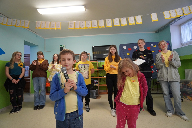 21 listopada obchodziliśmy szkolny Dzień Życzliwości. Tego dnia wielu uczniów i nauczycieli ubranych było na żółto. Kolor żółty symbolizuje szczęście i radość. Jest też informacją, że potrzebujemy kontaktu z drugim człowiekiem.