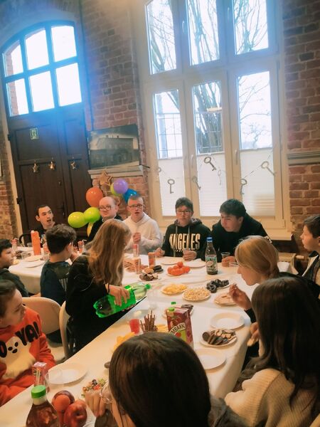 Uczniowie przygotowali dekoracje andrzejkowe, szereg wróżb i poczęstunek. Wróżby cieszyły się dużym zainteresowaniem i sprawiły wszystkim dużo radości. Wspólne tańce, rozmowy i zabawa zintegrowały wolontariuszy i podopiecznych i utwierdziły w przekonaniu jak ważne są wspólne spotkania.