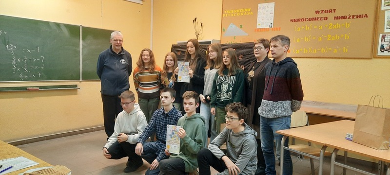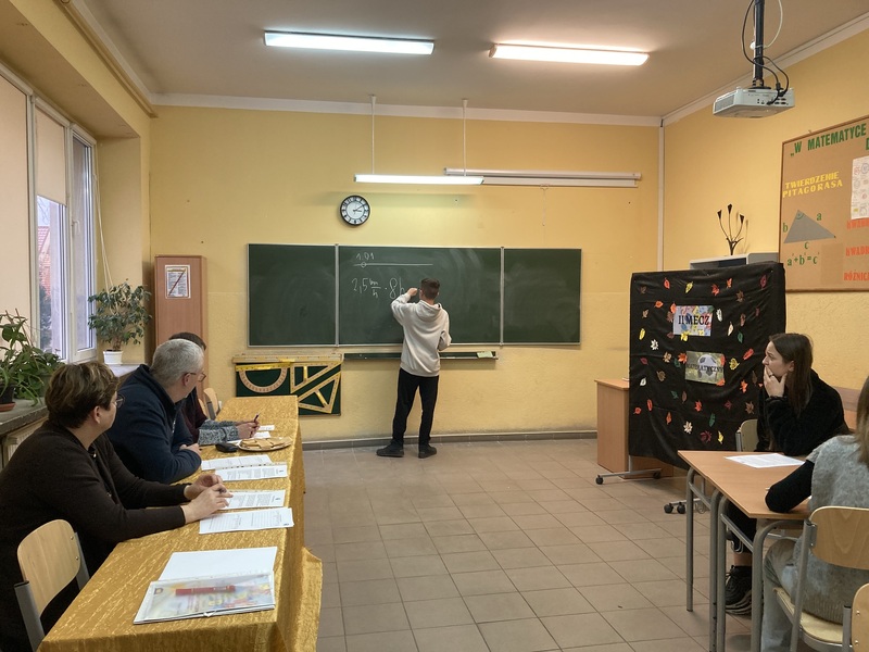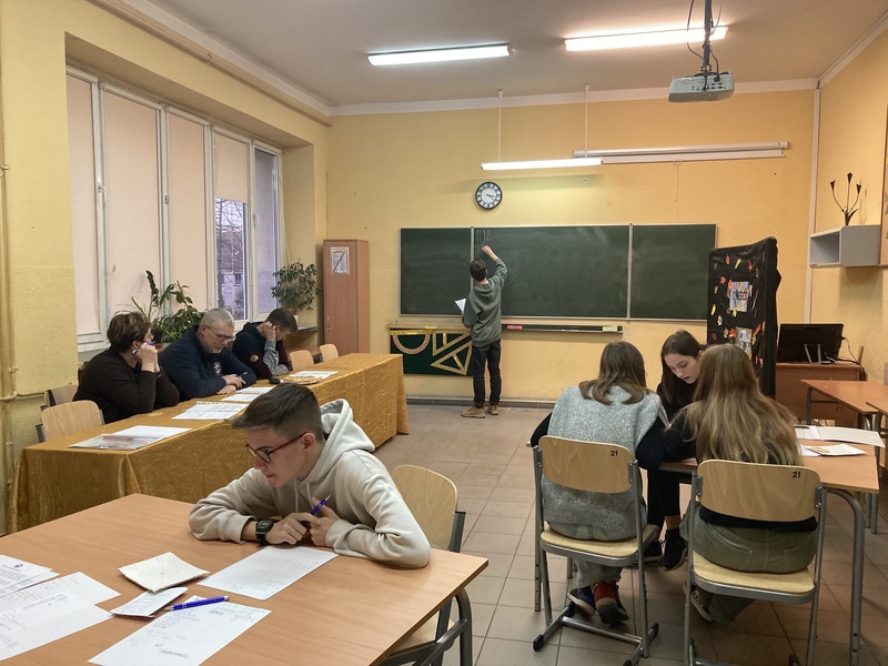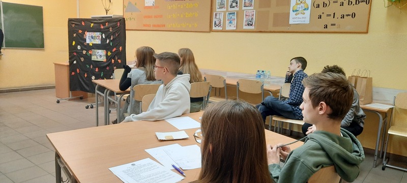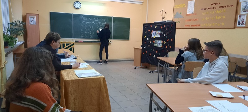 Obie drużyny, po otrzymaniu kopert z zadaniami, miały 45 minut na przygotowanie rozwiązań 7 zadań. Naszą szkołę reprezentowali: Maksymilian Machyna – kapitan drużyny (kl. 8A), Patrycja Makarewicz (kl. 8A), Kornel Kolański (kl. 8A) oraz Paweł Czajkowski (kl. 8C) i Bartosz Pomianowski (kl. 8A) jako obserwatorzy.