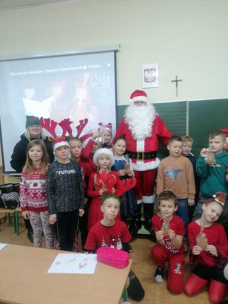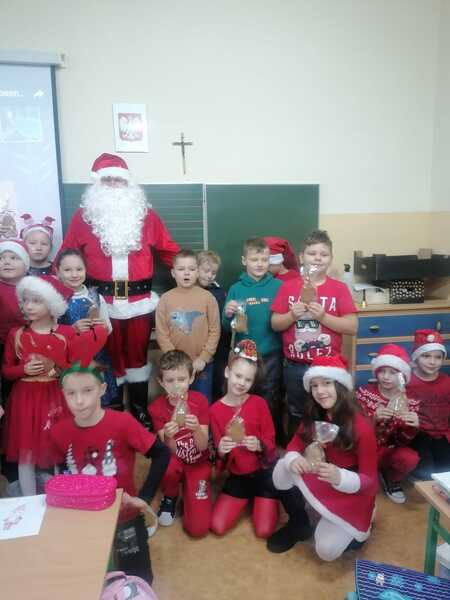 Tradycyjnie, jak co roku w klasie panował szczególny klimat, przede wszystkim za sprawą szanownego Gościa. Mikołaj dotarł do klasy z workiem pełnym prezentów, co świadczy o tym, że dzieci były grzeczne :)