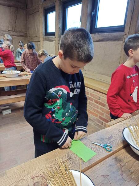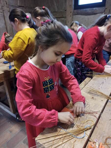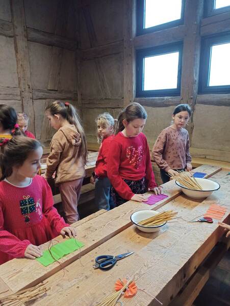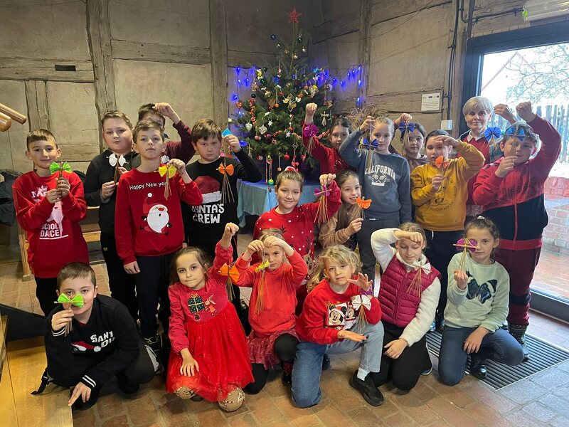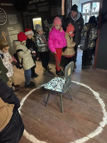 Tam uczestniczyli w warsztatach plastycznych, do których wstępem była rozmowa przy choince o symbolice poszczególnych ozdób choinkowych. Choinka ubrana była w słomiane, papierowe i piernikowe ozdoby, tak jak czyniono to dawniej.