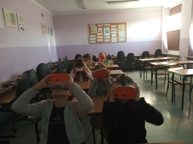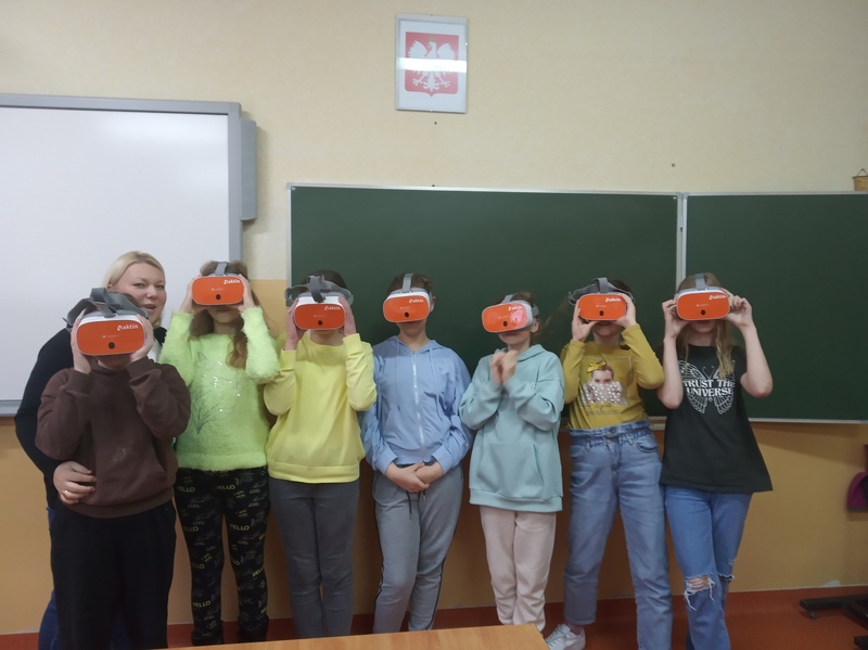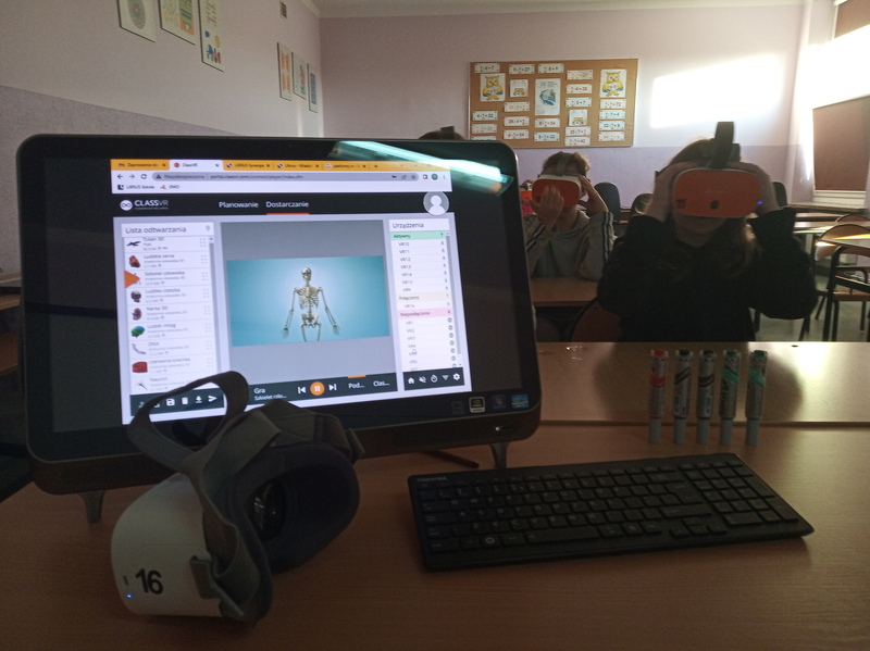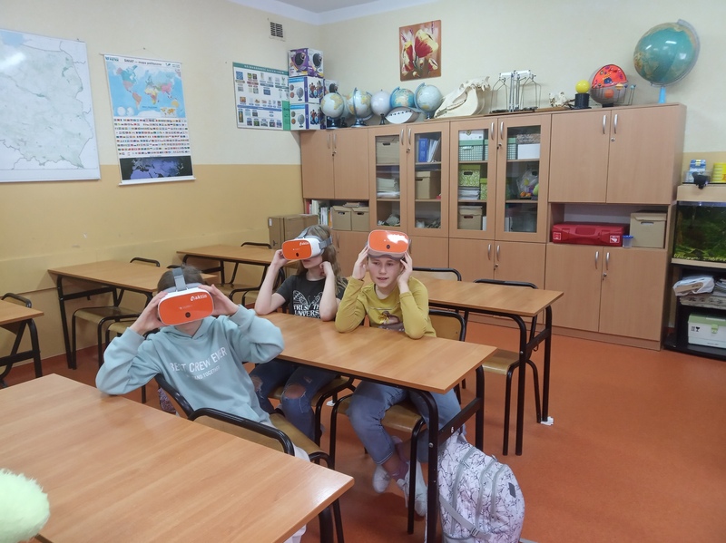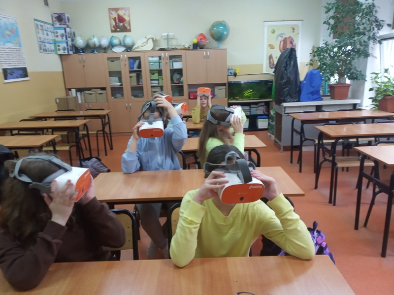 W listopadzie koło przyrodnicze poznawało tajniki ludzkiego ciała przy pomocy rozszerzonej rzeczywistości. Dzięki okularom VR zakupionym w ramach projektu #LaboratoriaPrzyszlości uczniowie zajrzeli do wnętrza żyły, oglądali ludzkie serce, mózg i szkielet. Trójwymiarowość obrazu pozwoliła na dokładne obejrzenie narządów i poznanie ich pracy. Niezapomniane doznania dostarczyła nam podróż z nurtem krwi, spotkanie z ogromnymi czerwonymi krwinkami i kolizja z leukocytem. Kolejne zajęcia przeniosą nas w świat egzotycznych zwierząt.