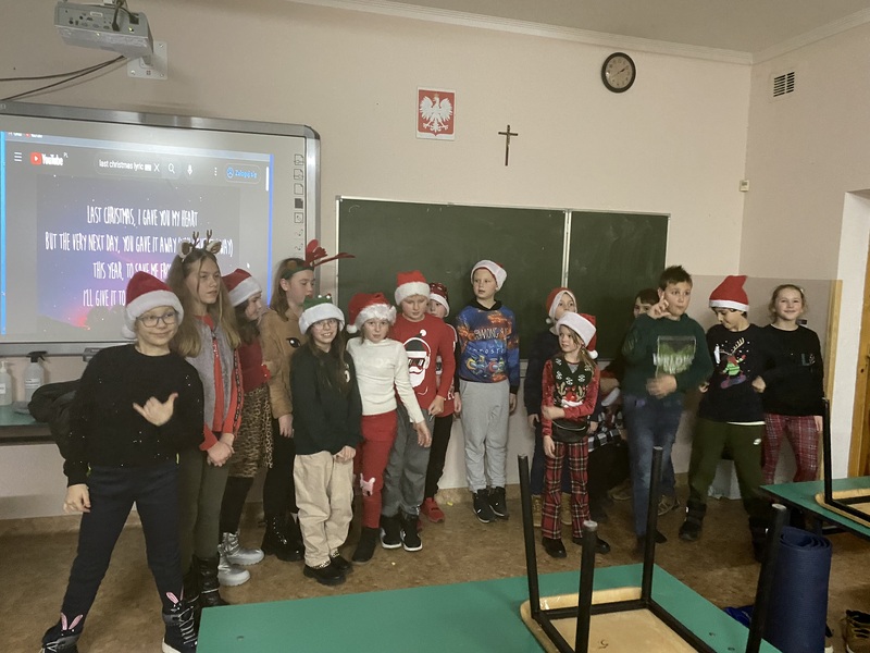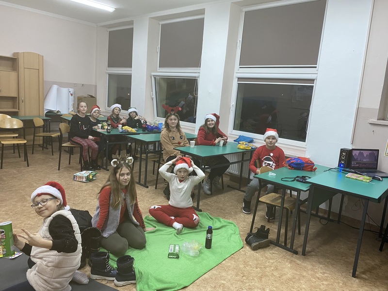 Dnia 02 grudnia uczniowie z klas 4a i 4e wzięli udział w Świątecznym wieczorku anglojęzycznym, który odbył się wieczorową porą w naszej szkole. Dzieci spędziły czas w świątecznej atmosferze oglądając film „Kevin sam w domu” w języku angielskim, następnie z wielkim zapałem rozwiązywały zadania świątecznych quizów. Na koniec zabrzmiały brytyjskie i amerykańskie piosenki bożonarodzeniowe.