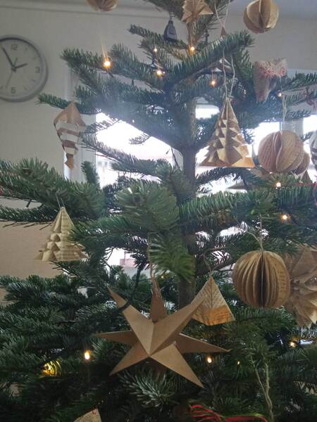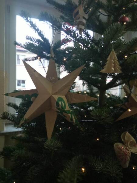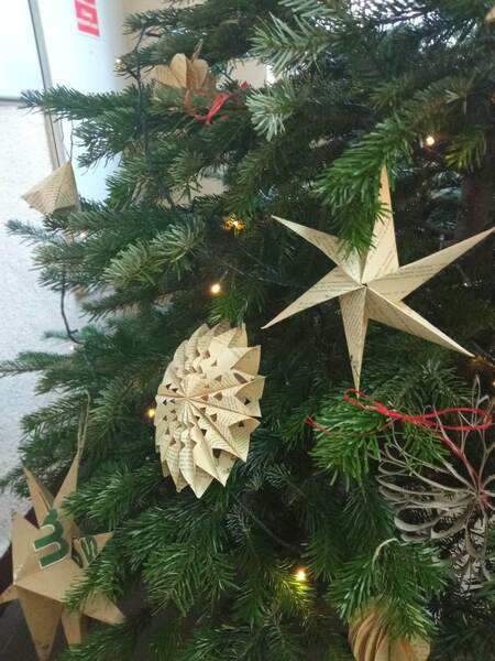 Pomysł na stworzenie ozdób choinkowych z: rolek po papierze toaletowym, papierowych toreb sklepowych, starych zniszczonych książek - przeznaczonych na makulaturę, worków śniadaniowych pojawił się na zajęciach świetlicowych. Całość wymagała od autorów dekoracji odrobiny wysiłku, ale jest ogromna satysfakcja, że wykorzystane zostały materiały wtórne, a do tego wszystkie ozdoby zrobiono własnoręcznie.