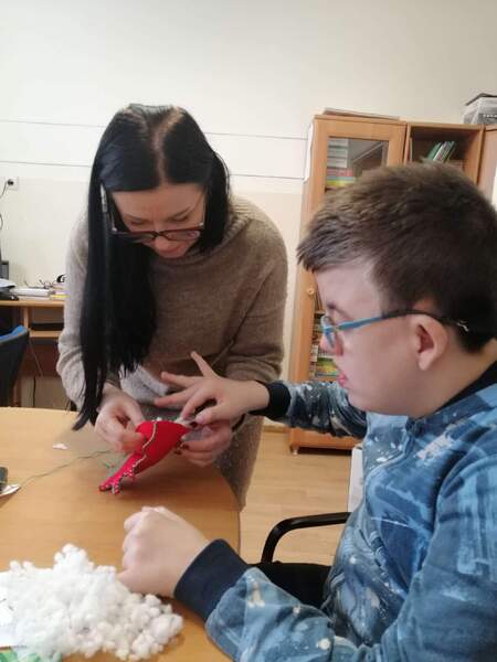 „Tańcowała igła z nitką, Igła ładnie, nitka brzydko…”. Aby przyjrzeć się z bliska pracy krawcowej w piątek 16 grudnia zaprosiliśmy Panią krawcową Teresę Szynkowską. Pani Teresa z wielkim zaangażowaniem prezentowała dzieciom działanie maszyny do szycia i wyjaśniła etapy powstania ubrania. Cierpliwie odpowiadała na wszelkie pytania dzieci. Dużą radość sprawiło dzieciom mierzenie się centymetrem krawieckim. Pani krawcowa uszyła każdemu z dzieci poszewkę na poduszkę. Wizyta gości okazała się dla uczniów niezwykle ciekawym i wartościowym wydarzeniem. Samodzielnie wykonały choinki – zawieszki z filcu. Okazało się, że szycie wcale nie jest takie łatwe. W tym miejscu pragniemy podziękować Pani Teresie Szynkowskiej za naukę szycia.
