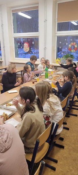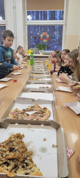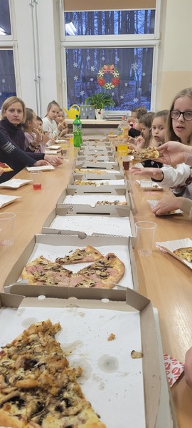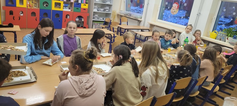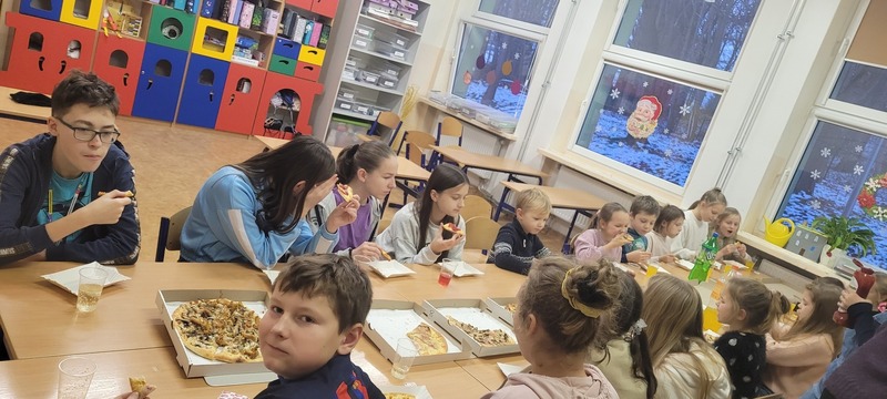 W piątek 16 grudnia odbyło się wyjątkowe spotkanie wolontariuszy ze Szkolnego Klubu Wolontariusza „Pomocna dłoń”. Na dzieci, które systematycznie i z wielkim zaangażowaniem pomagały podczas różnego rodzaju akcji czekała miła niespodzianka. Z okazji Dnia Wolontariusza opiekunowie klubu przygotowali dla nich poczęstunek, czyli pyszną pizze i coś słodkiego. Wspólna zabawa, śmiechy, żarty i dyskusje. Było naprawdę miło i mamy nadzieję, że niedługo spotkamy się ponownie.