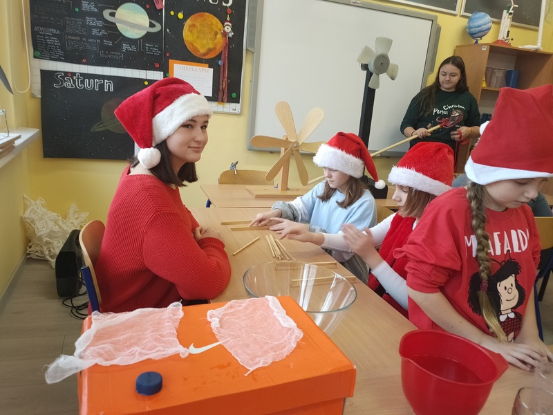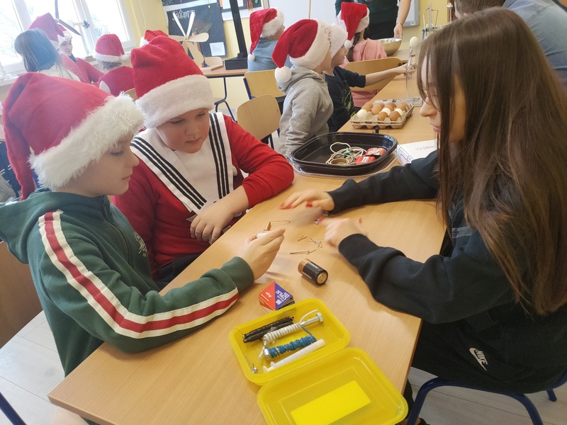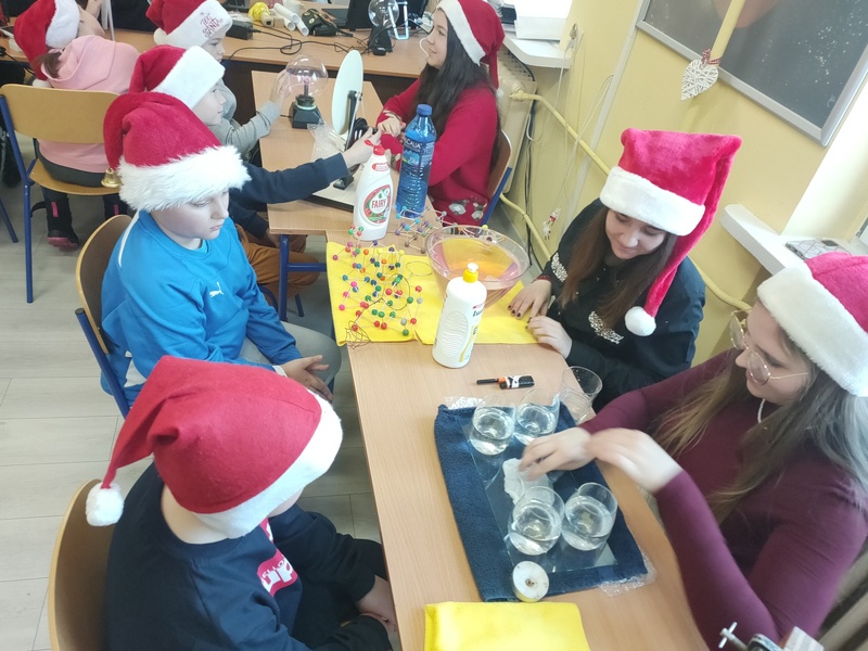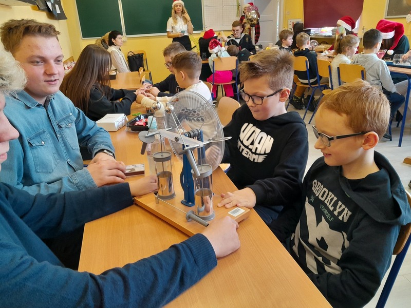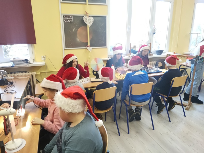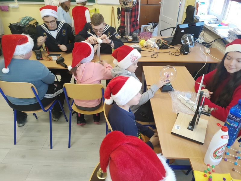 19.12.2022 r. uczniowie z klas 2b, 2e oraz 3d wybrali się do ZSM, gdzie mieli okazję uczestniczyć w Mikołajkowym spotkaniu z fizyką. Jak wiadomo dzieci uwielbiają eksperymentować i dzięki Pani Joannie Lebieckiej oraz uczniom ZSM mogły to robić samodzielnie i w bezpieczny sposób.