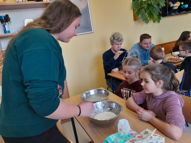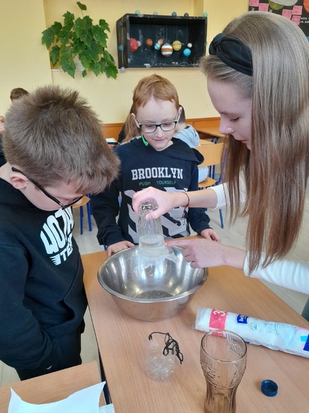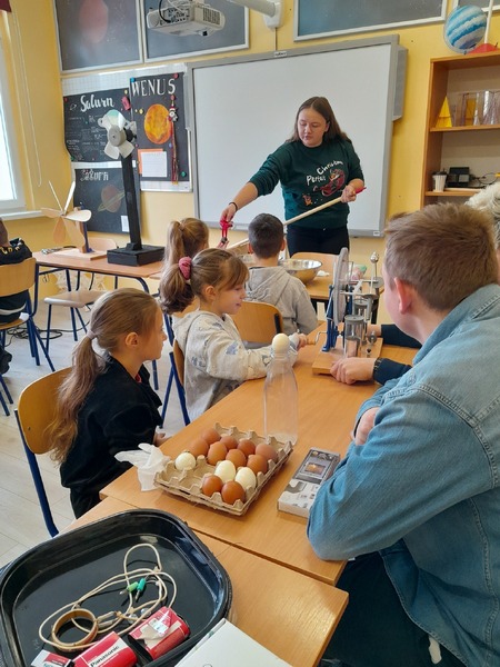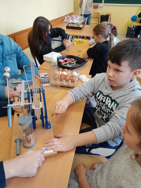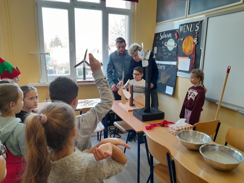 Uczniowie wykonywały następujące doświadczenia: Jak działa wiatrak ?, Nurek Kartezjusza, Most Leonarda da Vinci, Zaczarowany kelner, Zaczarowana kula, Zabawy z napięciem powierzchniowym, Elektromagnes, Zwojnica, Ciecz nienewtonowska, Jajko w butelce, Wirówka, Zaczarowana szklanka.
