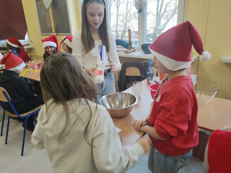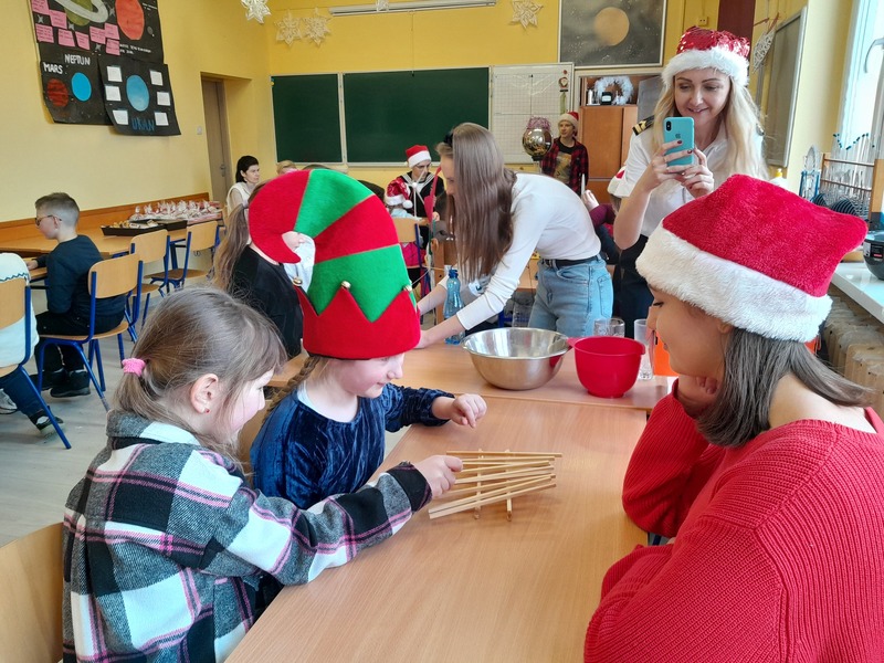Niespodzianką dla uczniów były również przygotowane przez starszych kolegów smakołyki oraz zwiedzanie hali sportowej na której trwały przygotowania do 13. Pokazu Stołów Wigilijnych.