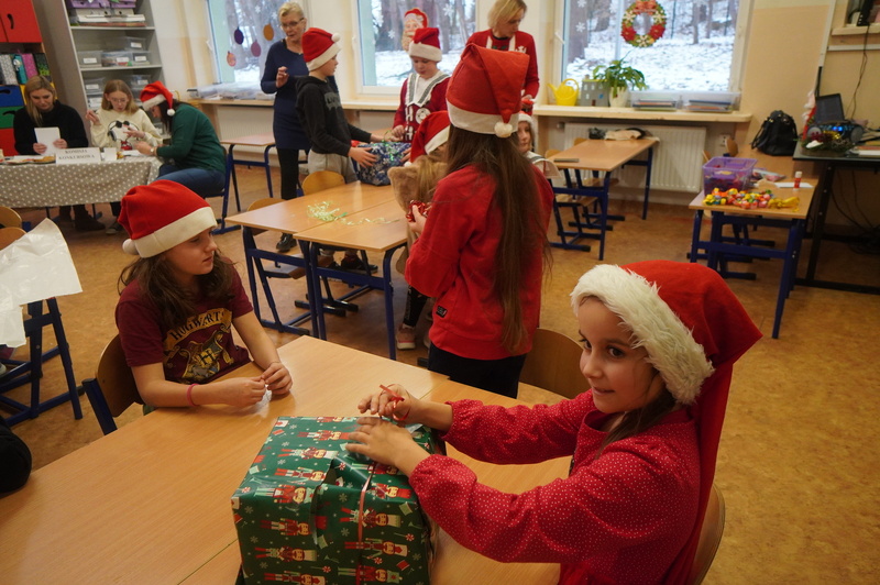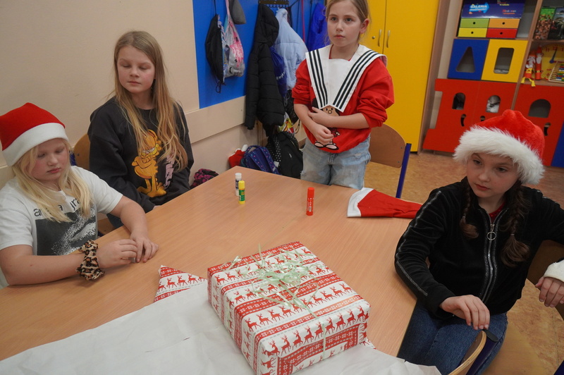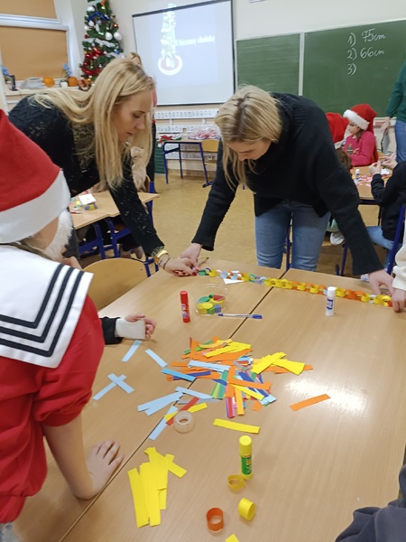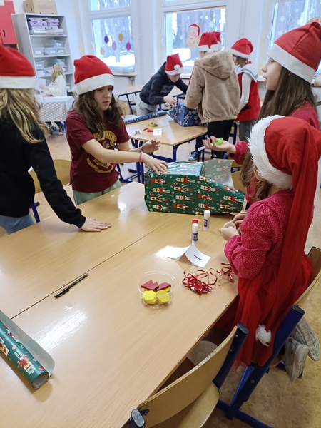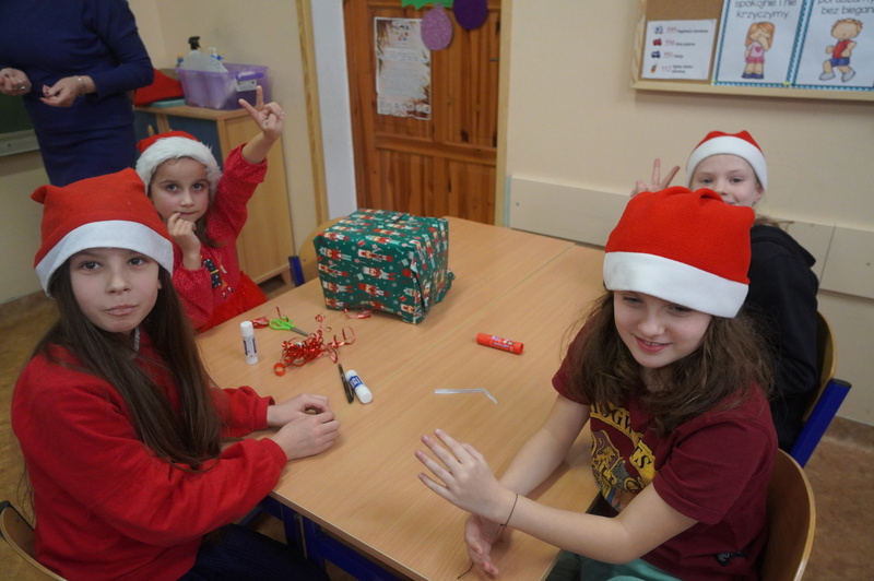 Trzecioklasiści pracowali w miłej i przyjaznej atmosferze, zadania wykonywali z dużym zaangażowaniem. Trzeba było np.: zapakować prezent, ułożyć życzenia świąteczne z rozsypanki wyrazowej, wykonać najdłuższy łańcuch na choinkę, a także wykazać się znajomością kolęd.