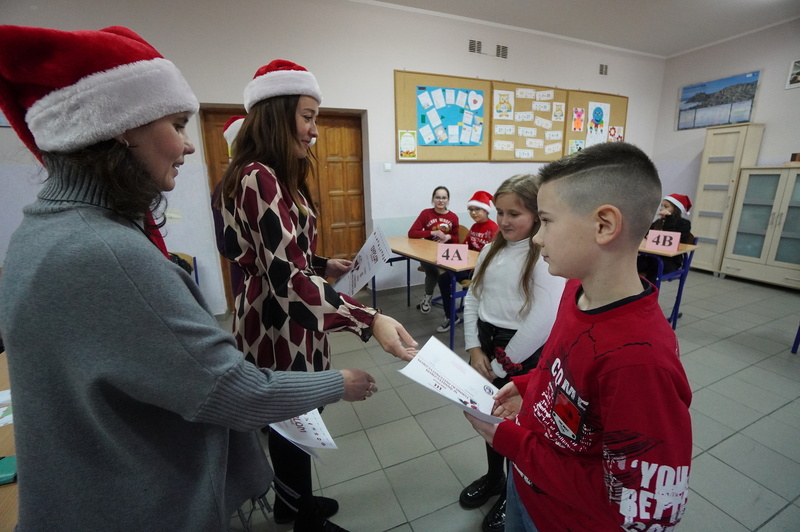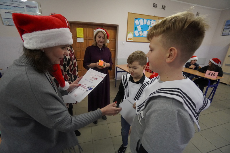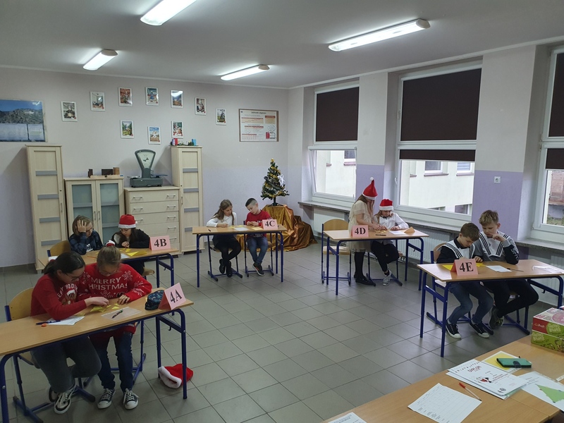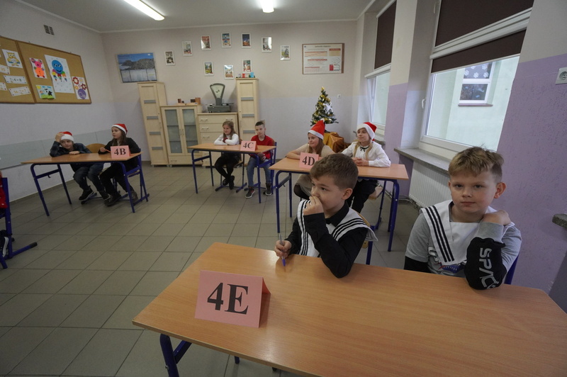22 grudnia w naszej szkole zrobiło się świątecznie. Przekonali się o tym uczniowie klas czwartych, którzy wzięli udział w „Świątecznym Turnieju Matematycznym”. Dwuosobowe drużyny zmierzyły się ze sobą w pięciu konkurencjach wymagających od uczestników oprócz wiedzy matematycznej, także pomysłowości oraz szybkości podejmowania wspólnej decyzji. Nad przebiegiem konkursu czuwało jury w składzie: wicedyrektor Katarzyna Łusiewicz, pani Marta Sołtan, pani Magdalena Kasprzykowska.