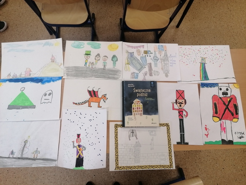 Oczekując na Boże Narodzenie, by chodź na chwilkę zatrzymać się w biegu życia codziennego, uczniowie klasy 3a wsłuchiwali się w tekst książki „Świąteczna podróż” Jarosława Kaczmarka. Każdego dnia, począwszy od 1 grudnia mieli okazję poznać historię Alicji i Kuby, którzy codziennie otwierając jedno okno z kalendarza adwentowego przeżywali wspaniałe przygody. 24 opowiadania, które zabrały dzieci w niezwykłą podróż po tradycjach bożonarodzeniowych z różnych stron świata, pozwoliły im na nowo odkryć magię świąt. Na zakończenie dzieci przeniosły najciekawsze dla nich opowiadania na kartkę papieru. Dziękuję, że mogłam choć trochę przybliżyć nastrój radosnego oczekiwania na święta.