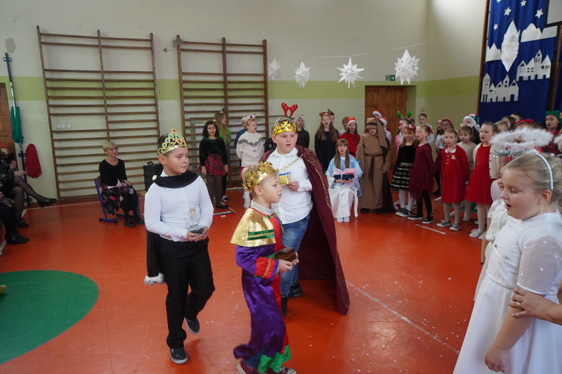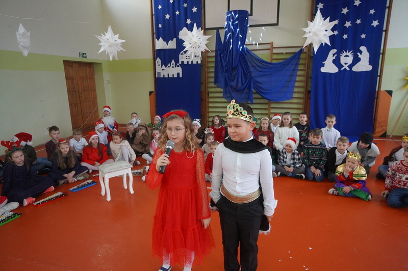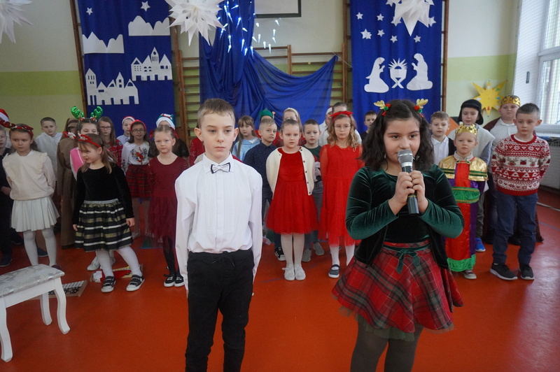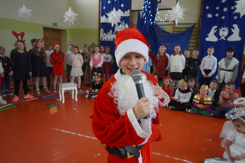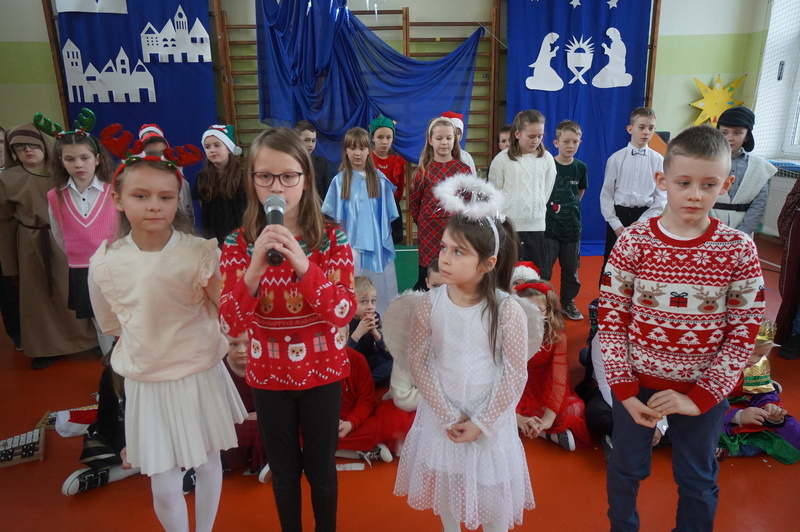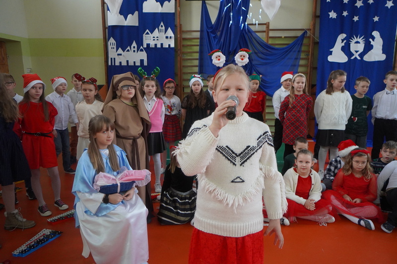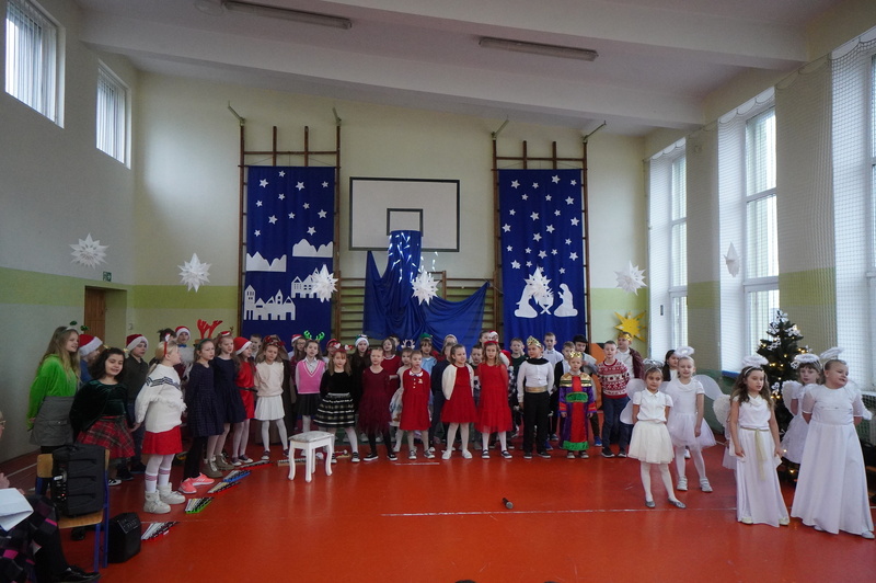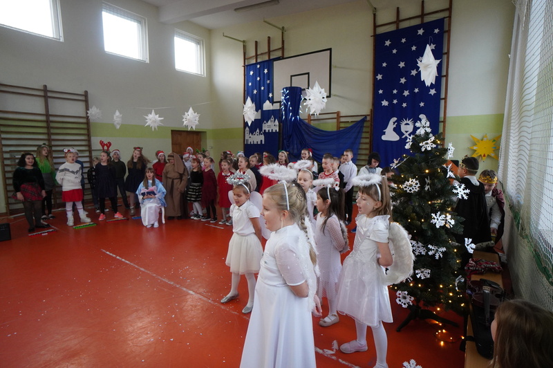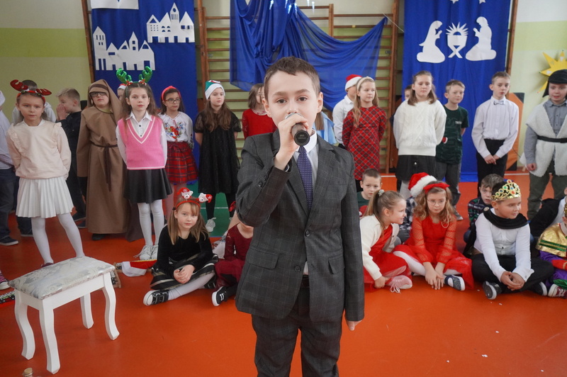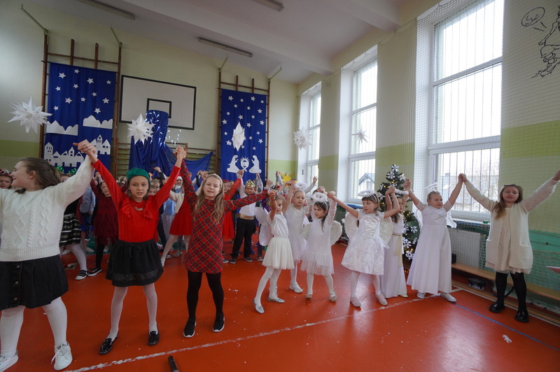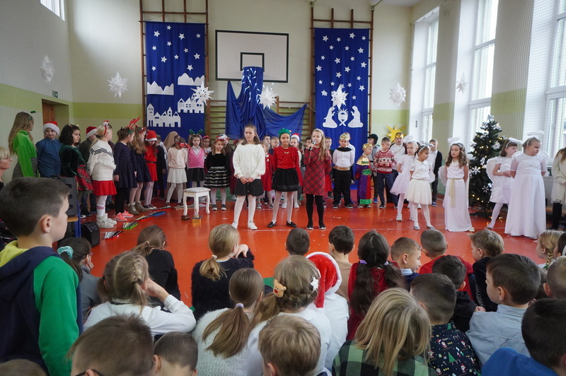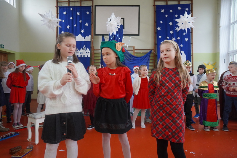 W piątkowy, przedświąteczny poranek młodzi wykonawcy z klas 1-3 wprowadzili zgromadzonych na sali gimnastycznej w Trójce - w świąteczny nastrój – odbyło się bowiem świąteczne przedstawienie.