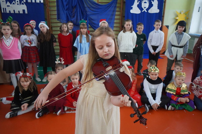 Świąteczne przedstawienie obfitowało w utwory nawiązujące do świąt, zimy oraz w tradycyjne kolędy. Piosenkom i wierszom towarzyszyły utwory grane na dzwonkach oraz na skrzypcach. Dzieci z radością, ale i należytą powagą odśpiewały i zagrały przepiękne pastorałki oraz kolędy.