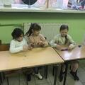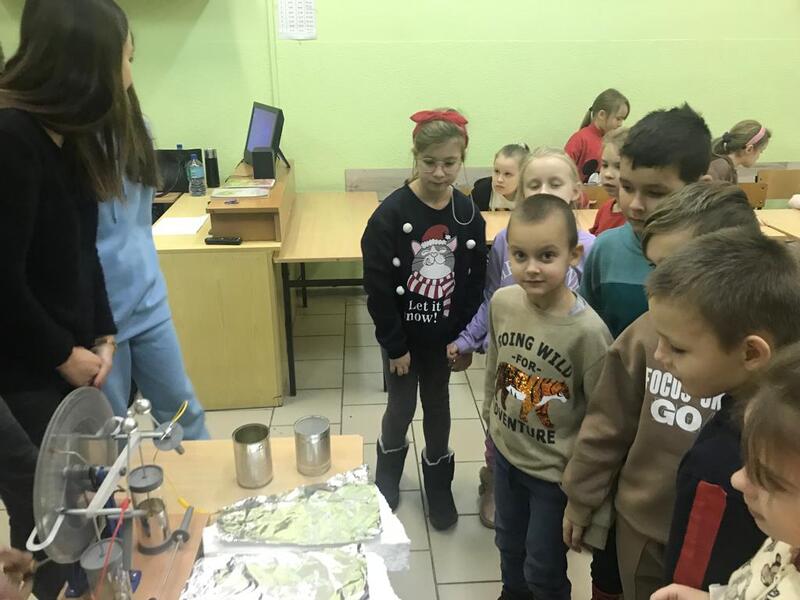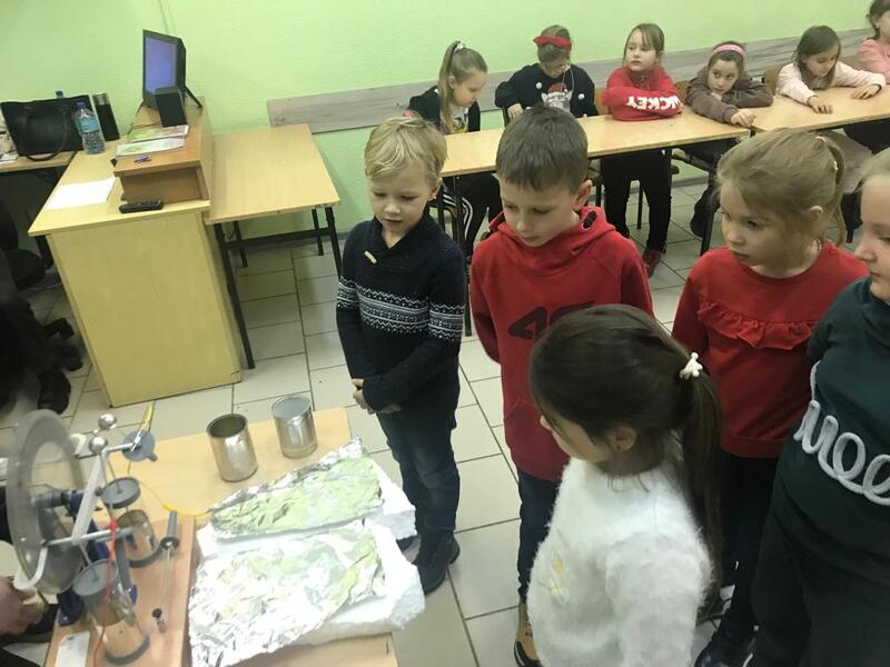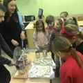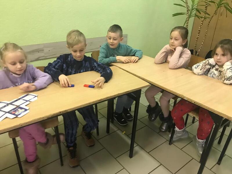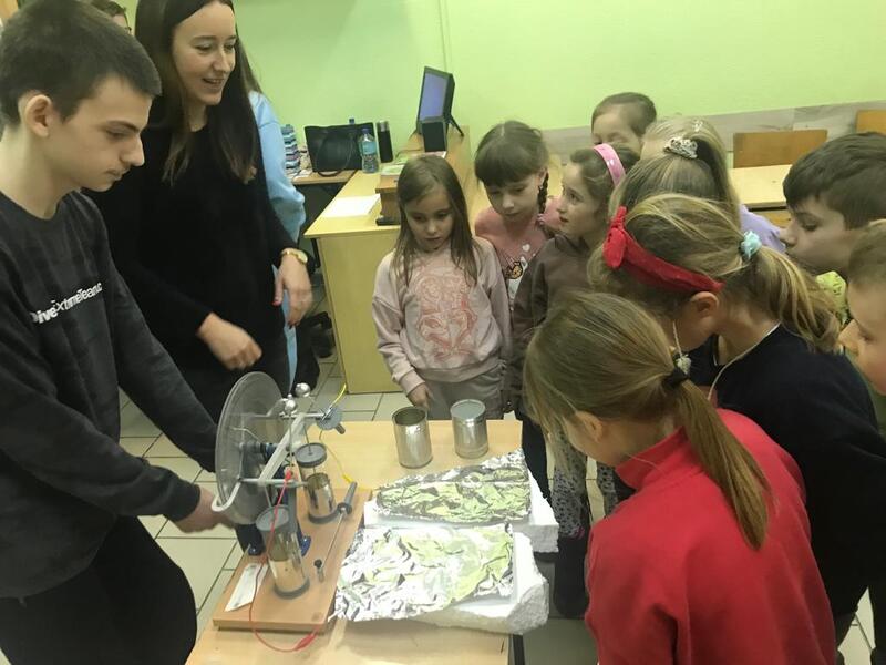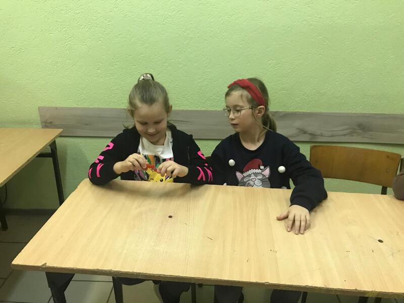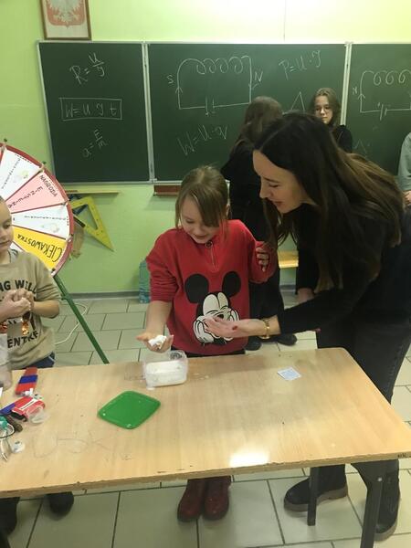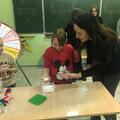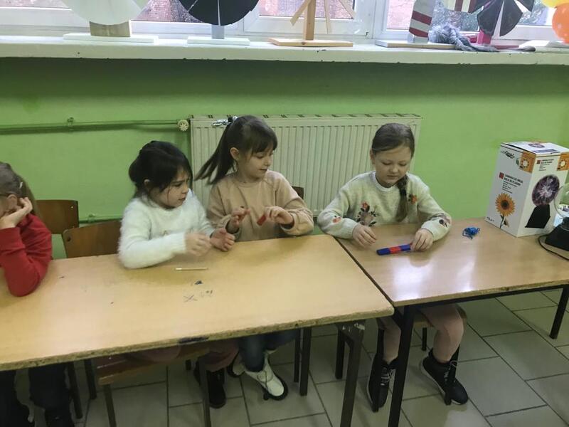 Uczniowie kl. I B wraz z wychowawczynią mieli okazję gościć u uczniów klas starszych. Pani Marta Sołtan, wraz ze swoimi podopiecznymi z kl. 7 i 8 uczęszczającymi na kółko fizyczne przygotowali lekcję fizycznych doświadczeń. Zajęcia były niezwykle ciekawe. Dla pierwszaków zostało przygotowane koło fortuny, dzięki któremu mogły wylosować różne ciekawostki przyrodniczo-fizyczne, doświadczenia oraz nagrody. Biorąc aktywny udział w działalności badawczej dzieci prowokowane były do wyciągania wniosków, szukania zależności, określania przyczyn i skutków. Zajęcia te dostarczyły im niezliczonej ilości nowych przeżyć związanych z odkrywaniem właściwości rzeczy i zjawisk.