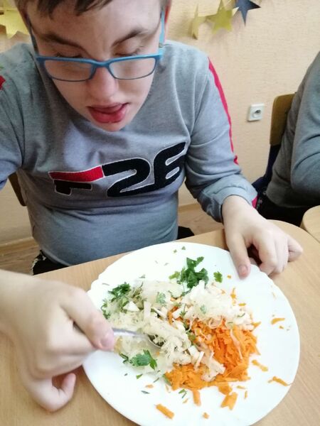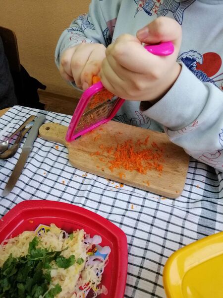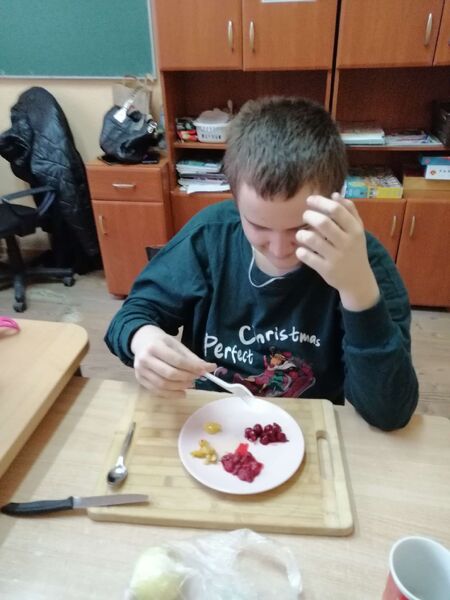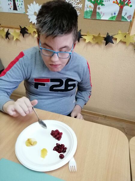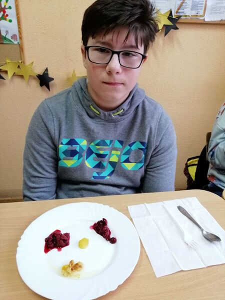 Dnia 04.01.2023 r. w ramach innowacji pedagogicznej „Kuchcikowo-kulinarne A,B,C”. Uczniowie wzięli udział w zajęciach mających na celu poznanie wartości odżywczych jesiennych przetworów. Podczas degustacji uczniowie mieli okazję spróbować nowych smaków zamkniętych w słoikach. Wiele radości sprawiło samodzielne wykonanie surówki z kiszonej kapusty.