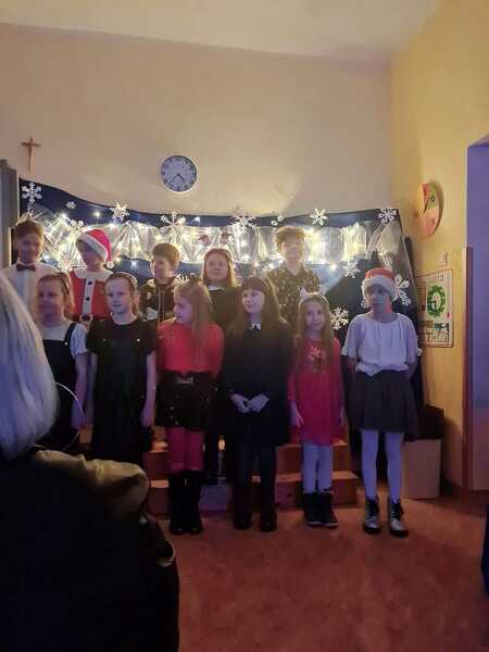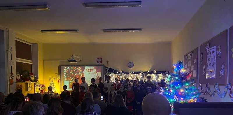 Był „…taki dzień, bardzo ciepły choć grudniowy…” - i wtedy to - 19 grudnia, dzieci zaprosiły rodziców na występ z okazji zbliżających się świąt Bożego Narodzenia. Młodzi artyści zaproponowali krótki popis swoich talentów. Piękne recytacje wierszy i zaprezentowane pastorałki, nieustannie wywoływały podziw i zachwyt gości. Dzieci składając życzenia obdarowały rodziców własnoręcznie wykonanymi Aniołami Szczęścia.
