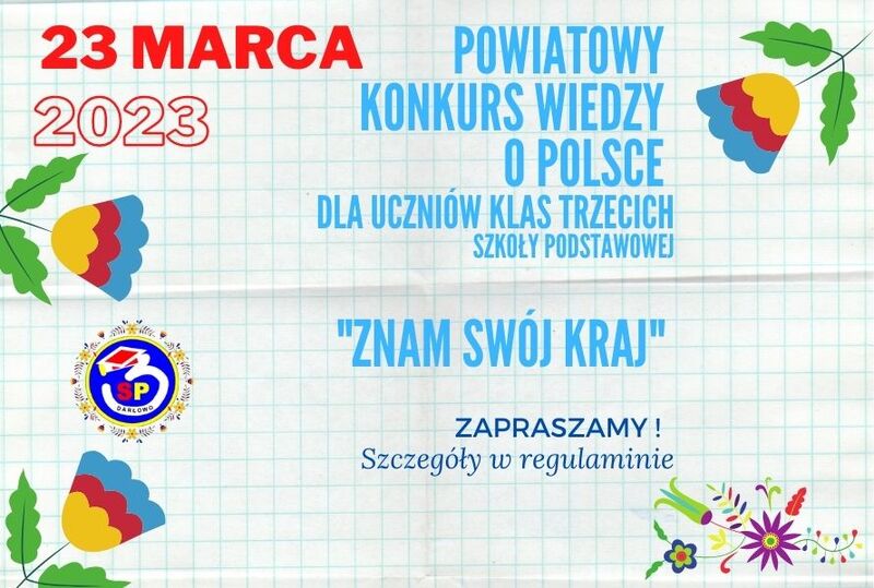 Już w marcu odbędzie się kolejna edycja Powiatowego konkursu wiedzy o Polsce dla uczniów klas 3 szkoły podstawowej „Znam swój kraj”.