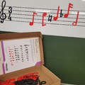 - dwie magnetyczne pięciolinie z zestawami nut samoprzylepnych,