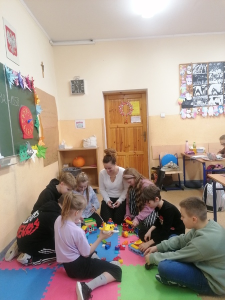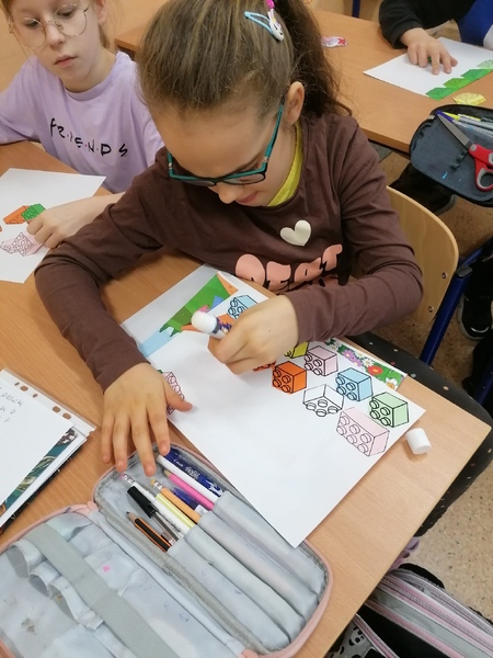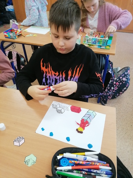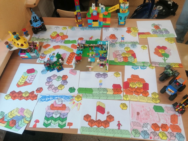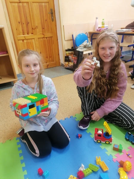 W budowaniu konstrukcji z klocków ogranicza tylko wyobraźnia, dlatego uczniowi podjęli wyzwanie i z przygotowanych klocków zbudowali własne projekty oraz stworzyli niesamowite prace przestrzenne. Wśród projektów pojawiła się budowla przedstawiająca salę lekcyjną i uczniów wraz z nauczycielkami. To był niesamowity dzień, bo kto z nas nie zachwycał się klockami LEGO? :)
