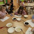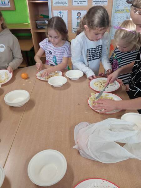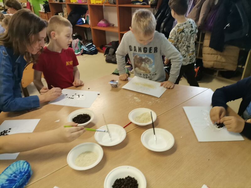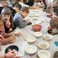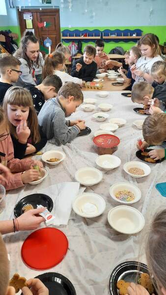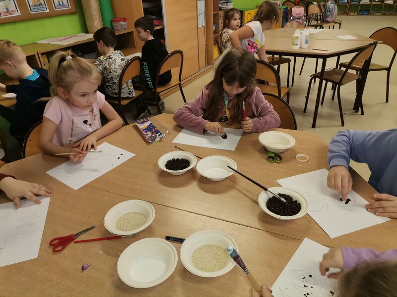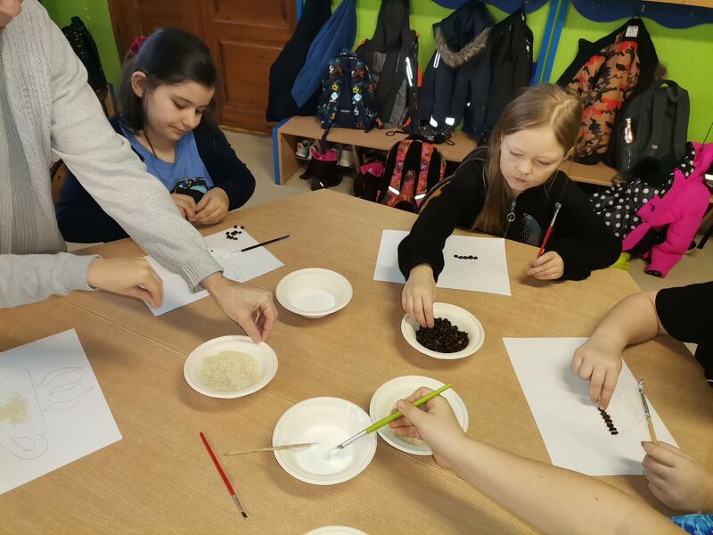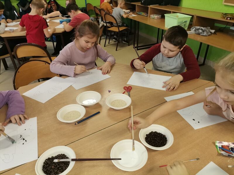 Zajęcia kreatywne, np.: biedronki z orzechów, filiżanki z ryżu i ziarenek kawy, sałatka owocowa, zdobienie pierniczków, ozdoby z suchej porcelany to tylko niektóre z propozycji zajęć, w których uczestnicy świetlicy chętnie biorą udział.