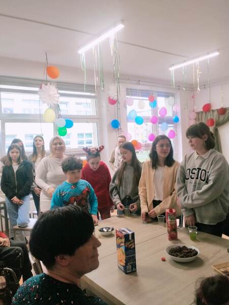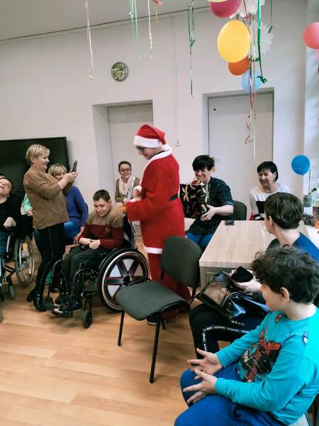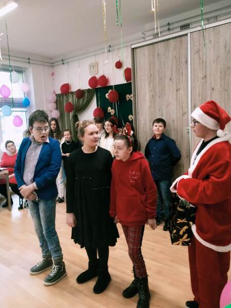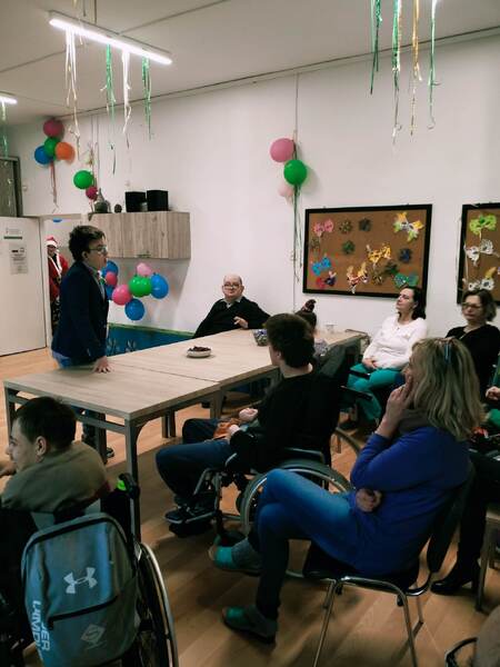 Wspólnie z podopiecznymi ośrodka zaśpiewali kolędy, tanecznie przywitali nowy rok. Nie zabrakło Mikołaja z workiem prezentów ,które wręczył podopiecznym. Podczas spotkania okazało się, że jeden z pracowników - Pani Ola oraz podopiecznych - Martynka mają urodziny. Wspólne odśpiewanie sto lat dostarczyło wszystkim wiele radości. Jeszcze raz przesyłamy wszystkiego najlepszego. Odwiedziny upłynęły w miłej atmosferze przy wspólnych rozmowach i poczęstunku.