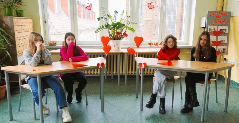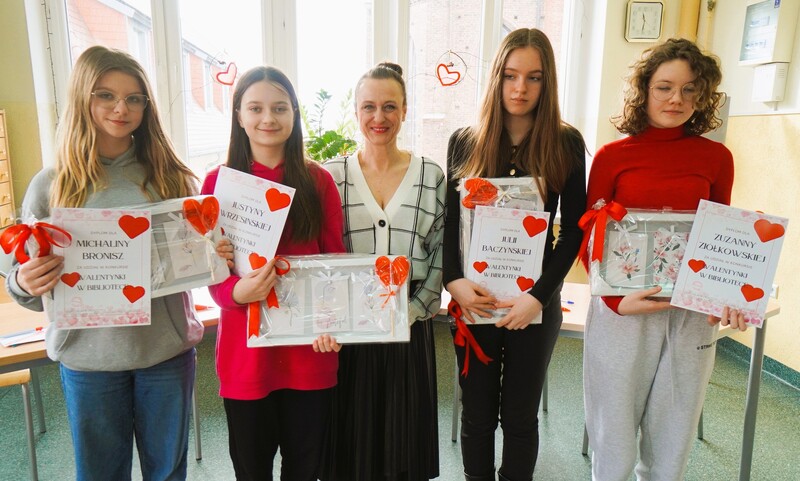 Tegoroczne Walentynki zawitały do biblioteki „Czytuś”. W związku z tym uczniowie klas siódmych próbowali swoich sił w konkursie czytelniczym pod hasłem „Walentynki w bibliotece”. Konkurs obejmował zadania typu: złamane serca, walentynkowa wykreślanka, przeskakiwanka miłości i przyjaźni, serduszkowe puzzle i walentynkowa kaligrafia.