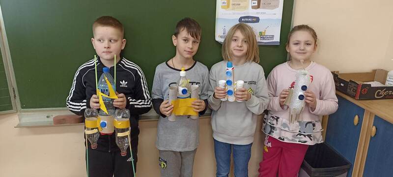 Dzieci na podstawie otrzymanych materiałów zdobywały wiedzę na temat segregacji i recyklingu odpadów. Karty pracy pozwoliły na rozwiązywanie zagadek, rozwijanie sprawności motorycznych i kreatywności. Uczniowie wysłuchali bajek o Drużynie Sir PET-ERA, do których stworzyli pomysłowe ilustracje. Jednym z zadań było wykonanie przestrzennej pracy plastycznej, która miała na celu nadać drugie życie butelce PET. Z nakrętek i butelek stworzono m.in. rakiety kosmiczne, oraz ozdobne kolorowe figurki. Były to zajęcia, które pozwoliły na wykorzystanie zasobów wyobraźni i fantazji oraz zdobycie wiedzy na temat recyklingu.