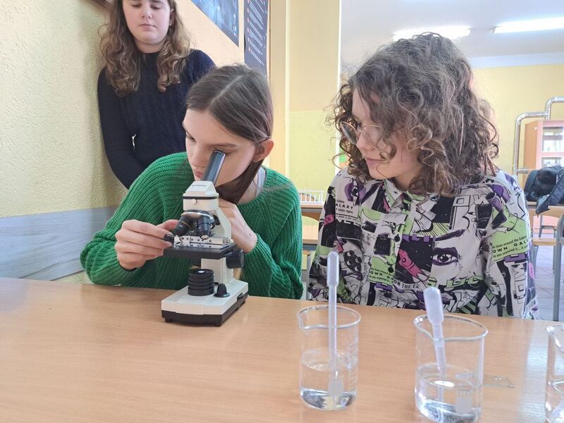 W klasach 7 i 8 na lekcjach chemii i w klasie 4B na zajęciach przyrodniczych uczniowie podejmowali problematykę związaną z dostępem do wody pitnej ludności na różnych kontynentach. Poznali ślad wodny wybranych produktów oraz zastanawiali się nad zrównoważoną konsumpcją. Na spotkaniach koła chemicznego uczennice obserwowały życie w kropli wody wykorzystując
