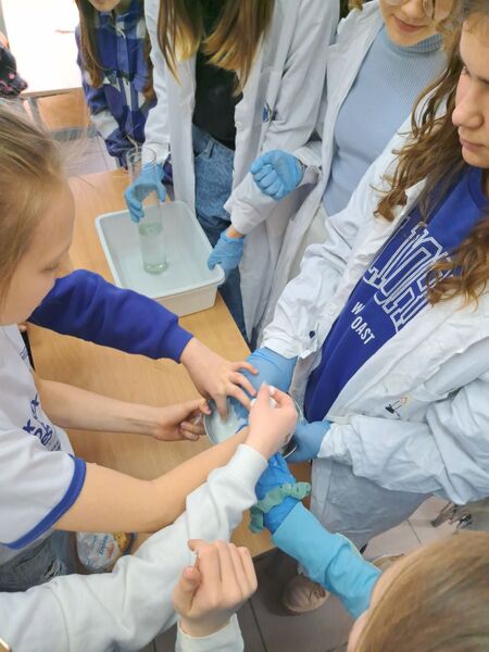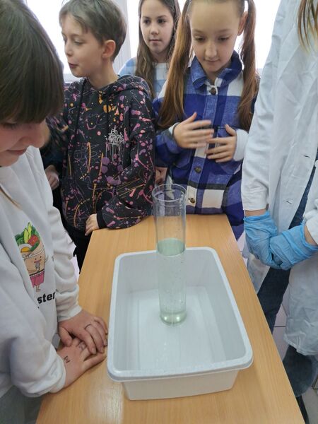 wodę morska i rzeczną. Następnie badały pH i zawartość wybranych składników. Przygotowały ciekawe eksperymenty, które zaprezentowały na zajęciach warsztatowych w klasie 4B. Były to doświadczenia dotyczące obiegu wody w przyrodzie, ciśnienia