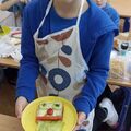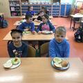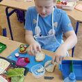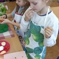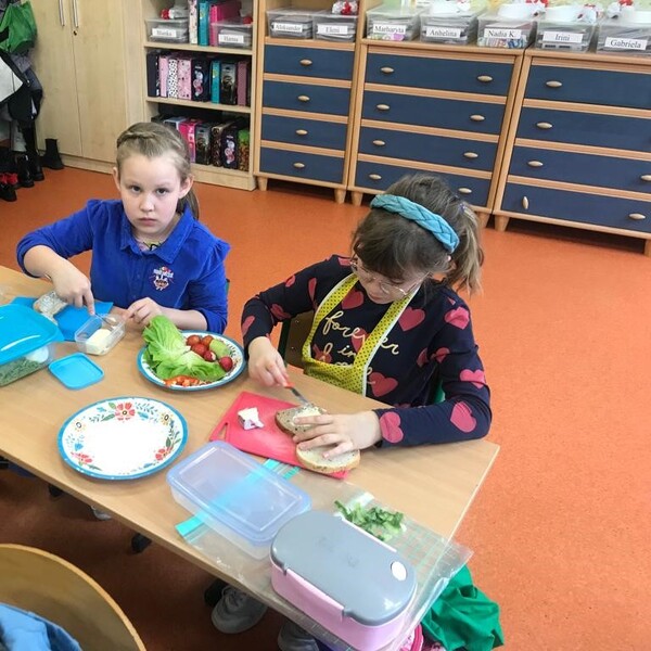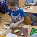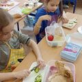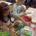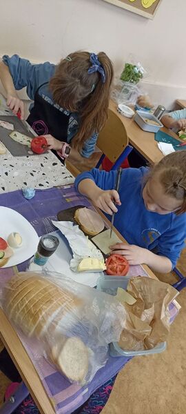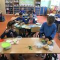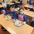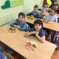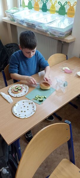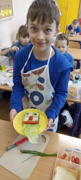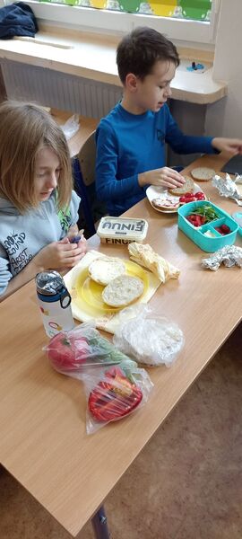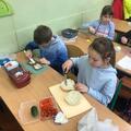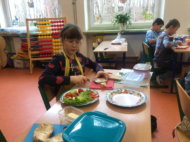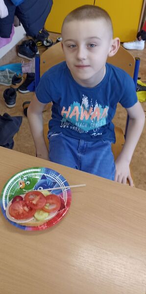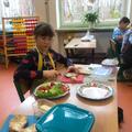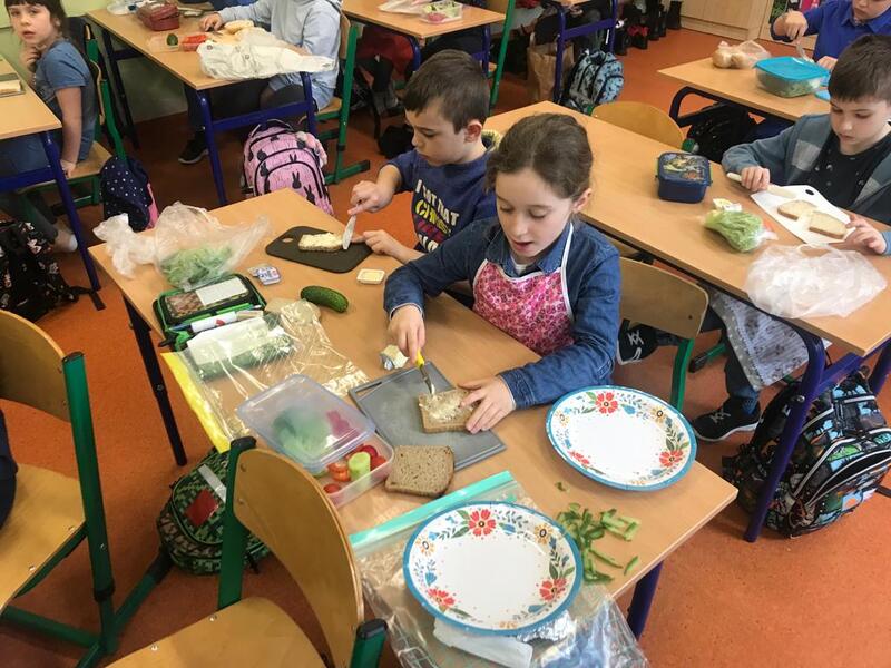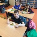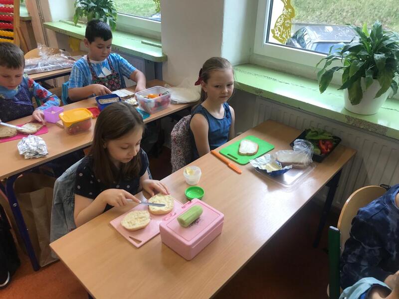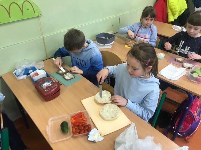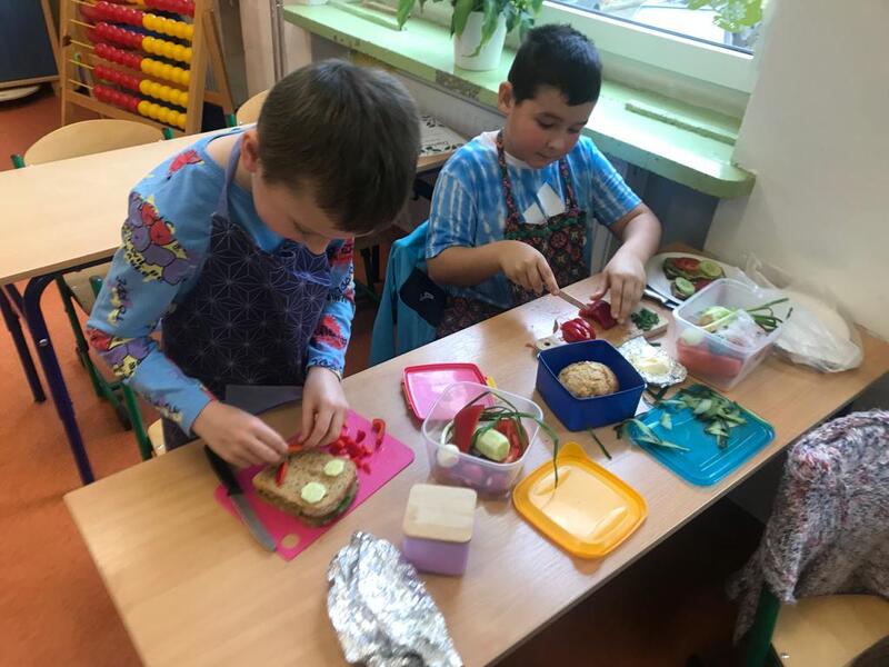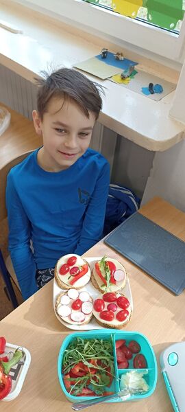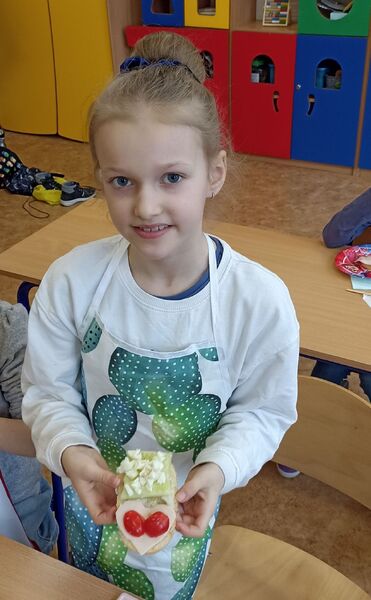 W ramach realizacji innowacji pedagogicznej „Moje zdrowie – moja siła, wielka moc”, uczniowie klas 1A i 1B na drugie śniadanie przygotowali kolorowe i zdrowe kanapki. Zajęcia kulinarne poprzedzone zostały rozmową na temat zasad zdrowego odżywiania oraz przestrzegania higieny podczas przygotowywania posiłków. Do wykonania swoich kanapek dzieci użyły ulubionych przez siebie warzyw oraz innych zdrowych produktów. Podczas pracy uczniowie wykazali się inwencją twórczą i przekonali się, że samodzielnie przygotowane kanapki smakują najlepiej.