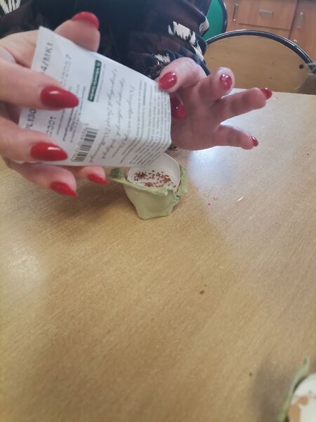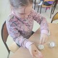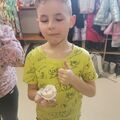 Warto zaznaczyć, że skorupki wykorzystane zostały z poprzednich zajęć, gdzie dzieci świętowały Dzień Gofra.