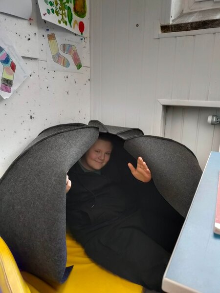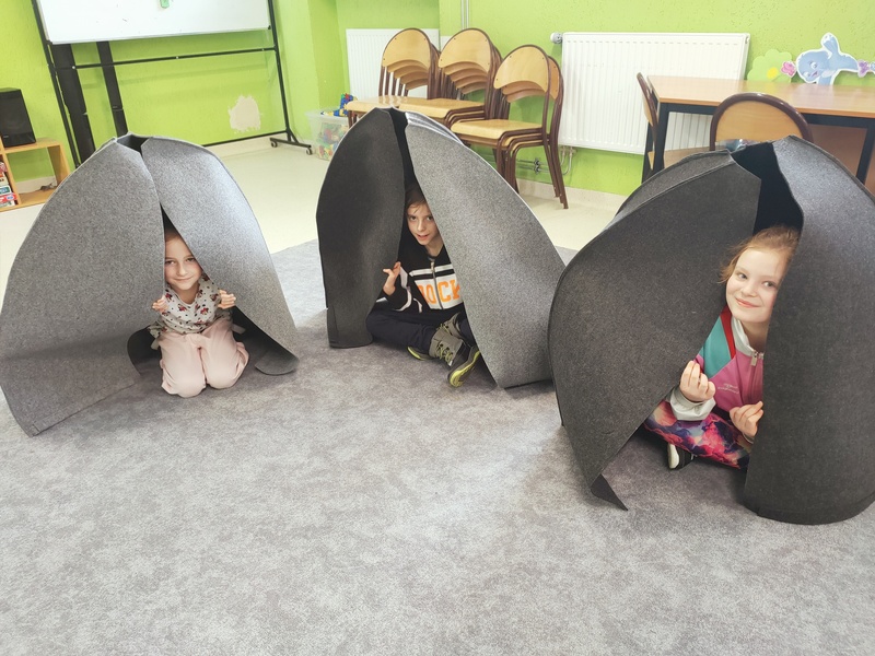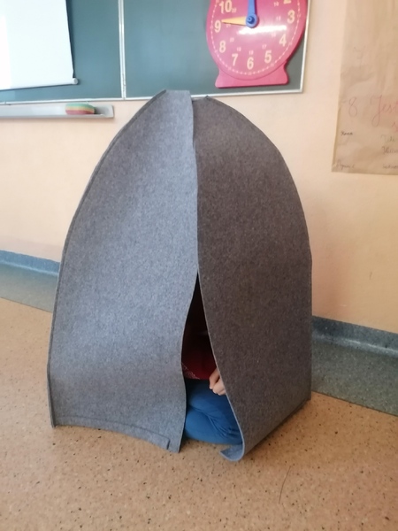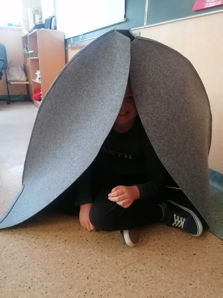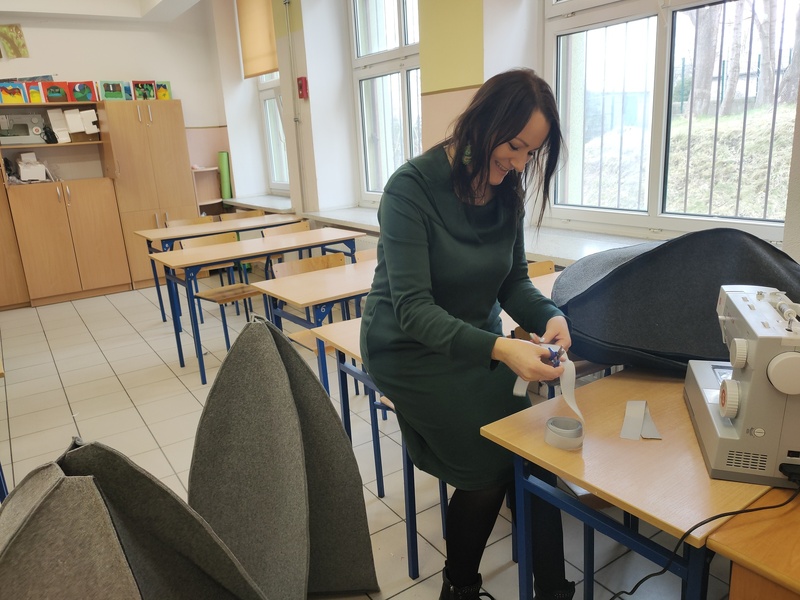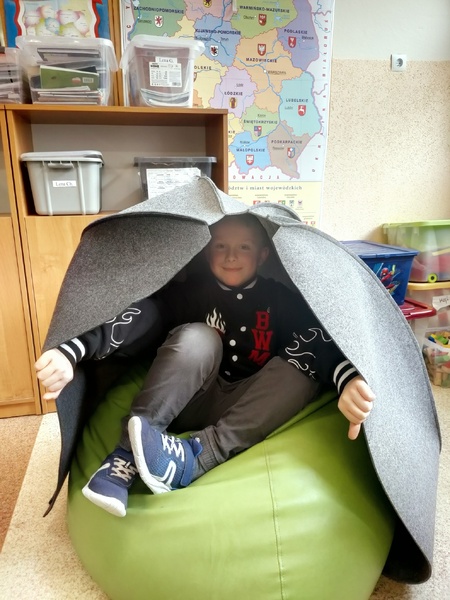 Uszyto 2 „fasole” i 4 „dynie”, które będą służyć naszym uczniom. W takim mobilnym kokonie z filcu można się schować przed całym światem choć na chwilkę, by złapać balans, ochłonąć, poradzić sobie z emocjami lub po prostu pobyć tam, gdzie jest trochę ciszej. Nasze filcowe fasolki i dynie zostaną wykorzystane w świetlicy szkolnej, sali terapeutycznej oraz w niektórych salach lekcyjnych.