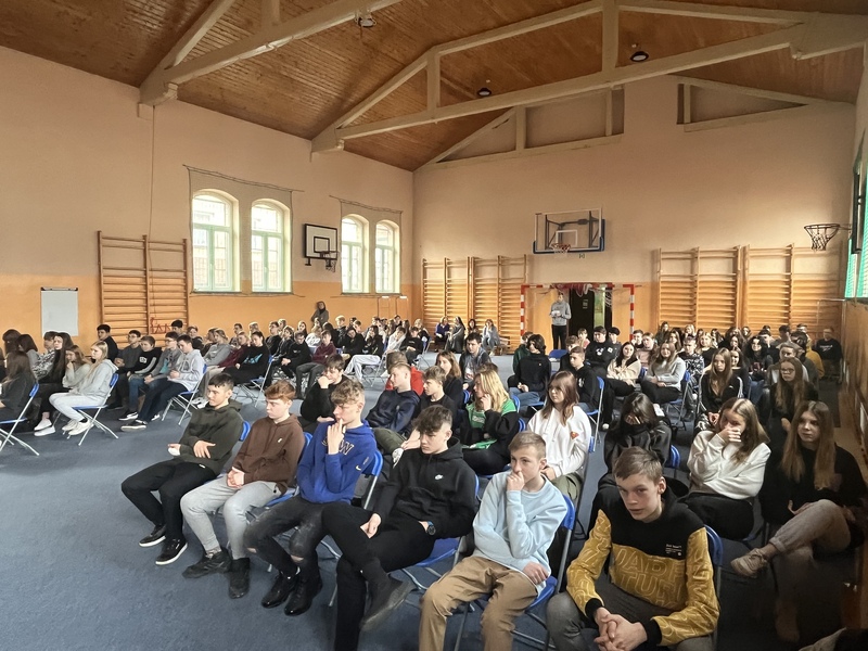 Jako pierwszy zaprezentował się Zespół Szkół Morskich z Darłowa – bardzo popularny wśród naszych absolwentów. Uczniowie mieli okazję usłyszeć o możliwościach wyboru różnych kierunków w technikum, liceum i szkole branżowej. Ósmoklasiści zadawali liczne pytania, na które obszernie odpowiadali przedstawiciele ZSM - ich starsi koledzy, a - w większości - absolwenci naszej „Trójki”.