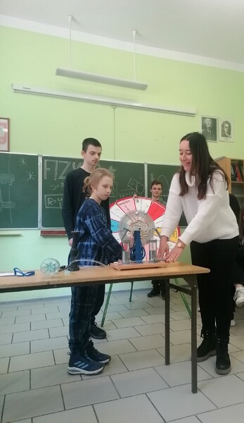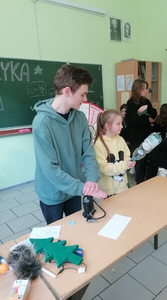 Podczas spotkania uczniowie wzięli udział w wielu doświadczeniach fizycznych zaprezentowanych przez starszych kolegów z kółka fizycznego. Uczestnicy spotkania poznali wiele ciekawostek, dowiedzieli się również, które doświadczenia są bezpieczne do zrobienia w domu.