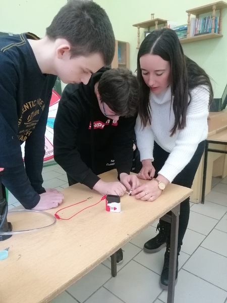 Dnia 20.04.br. uczniowie klasy 3A uczestniczyli w zajęciach prowadzonych przez Panią Martę Sołtan - nauczycielkę fizyki.
