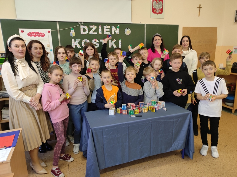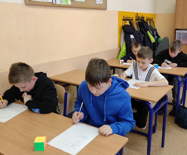 20 kwietnia br. w naszej szkole odbył się Konkurs Kostki Rubika. Osiemnastu uczniów z klas I-VI układało kostkę na czas i sprawdzało swoją wiedzę na temat Kostki Rubika. Wszystkim uczniom poszło świetnie.