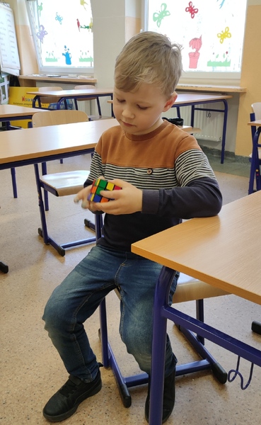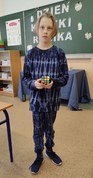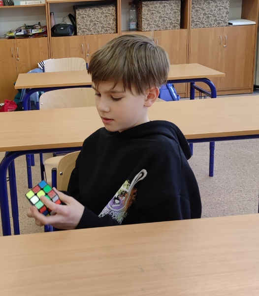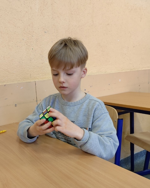 Rekord ułożenia Kostki Rubika ustanowił Dawid Gibas z klasy 6A z czasem 57 sekund.