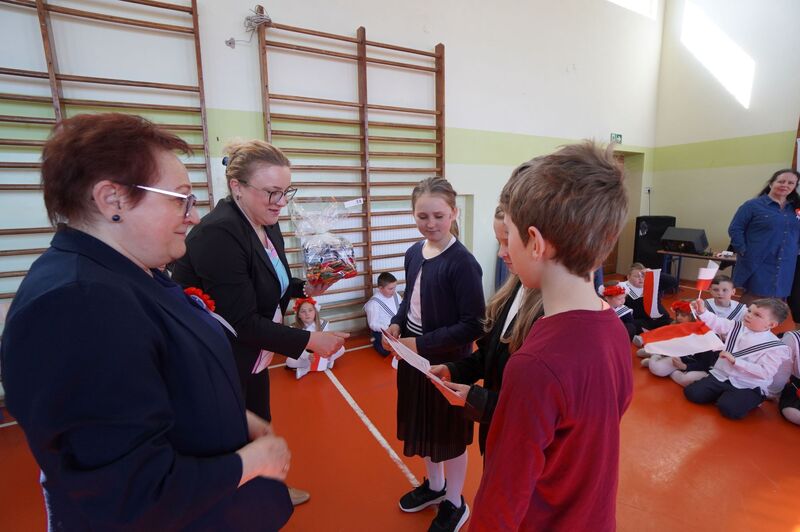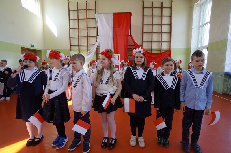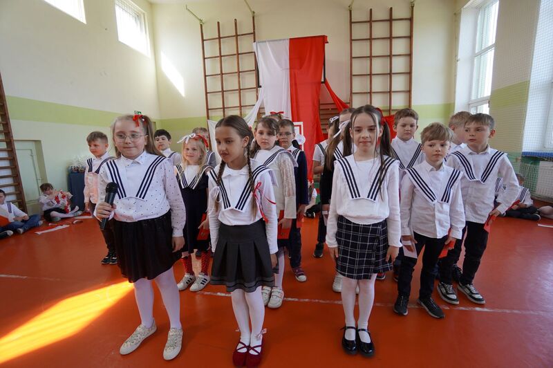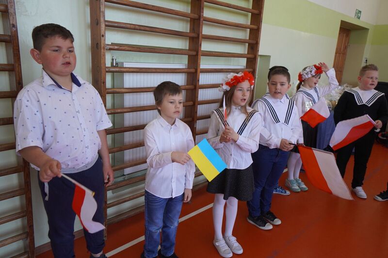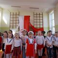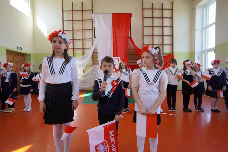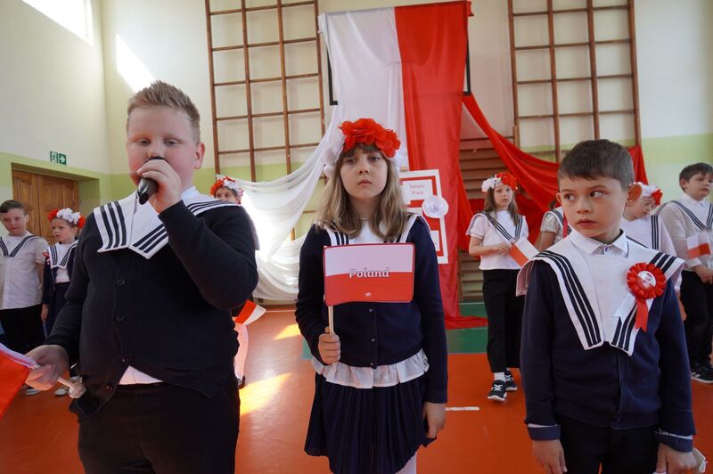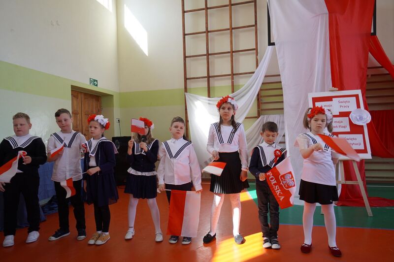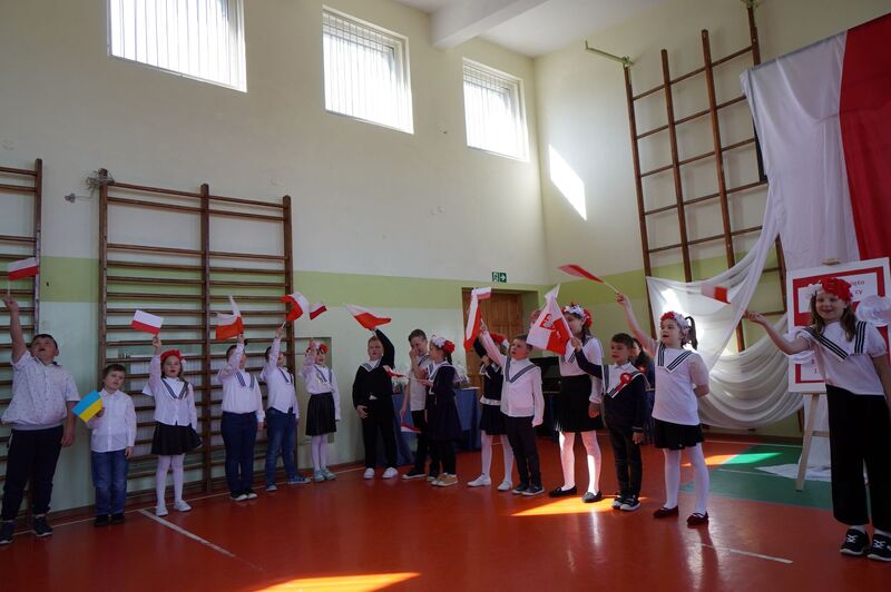 Z okazji świąt majowych uczniowie z klasy 2A i 2C przygotowali uroczysty apel dla klas I-III. Dzieci przybliżyły rówieśnikom historyczne wydarzenia i opowiedziały, dlaczego obchodzimy Święto Pracy, Dzień Flagi Rzeczpospolitej Polskiej oraz Święto Narodowe Trzeciego Maja.