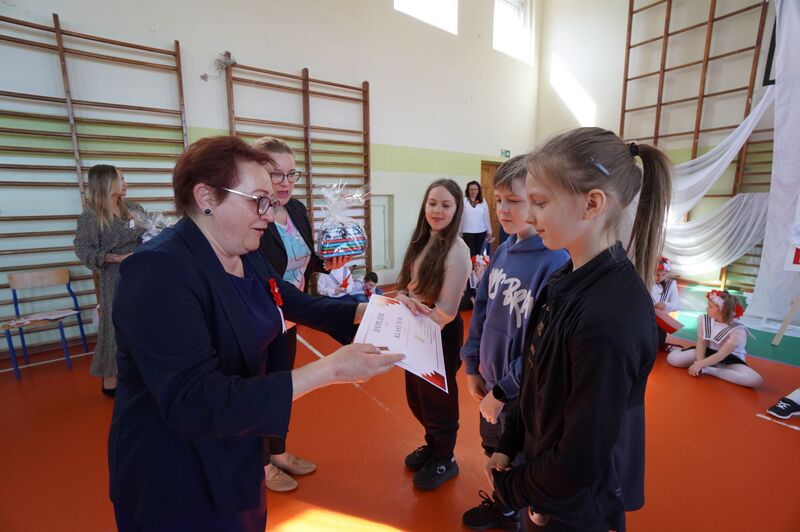 Podczas apelu zostały wręczone nagrody Szkolnego Konkursu Pieśni Patriotycznej „Śpiewamy dla Ciebie, Polsko!”
