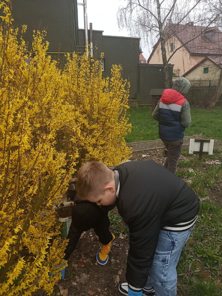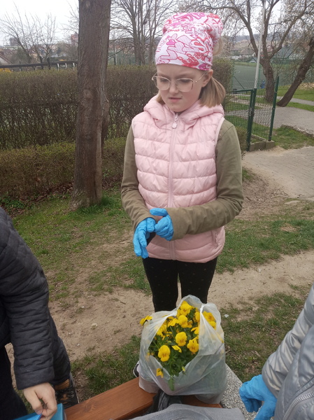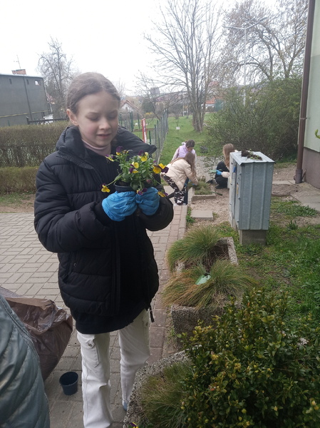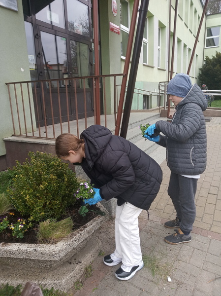 Klasa 4A zapoznała się z metoda usuwania chwastów bez pomocy chemii – kartonowaniem gleby oraz uporządkowała teren ogrodu Centrum Ekologicznym przy naszej szkole. Zaś uczniowie z koła przyrodniczego zasadzili wiosenne kwiaty na klombach przy wejściu do szkoły. Kolorowe bratki będą cieszyły oczy aż do wakacji! Niech też przypominają, aby dbać o naszą wspólną przestrzeń i przyrodę.